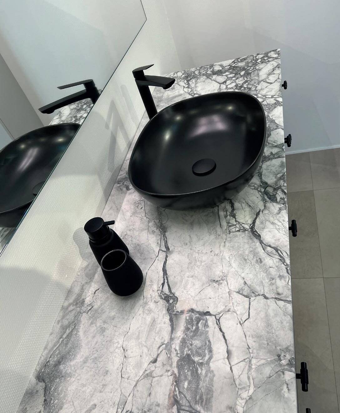 **Det er ikke muligt at lave integralvask i følgende materialer: 12mm komposit, alle materialer under 12mm tykkelse, marmor (med undtagelse af Jura Polar Blau, Verde Guatemala og Blanc Clair), River washed overflader, Pietra Lavica.