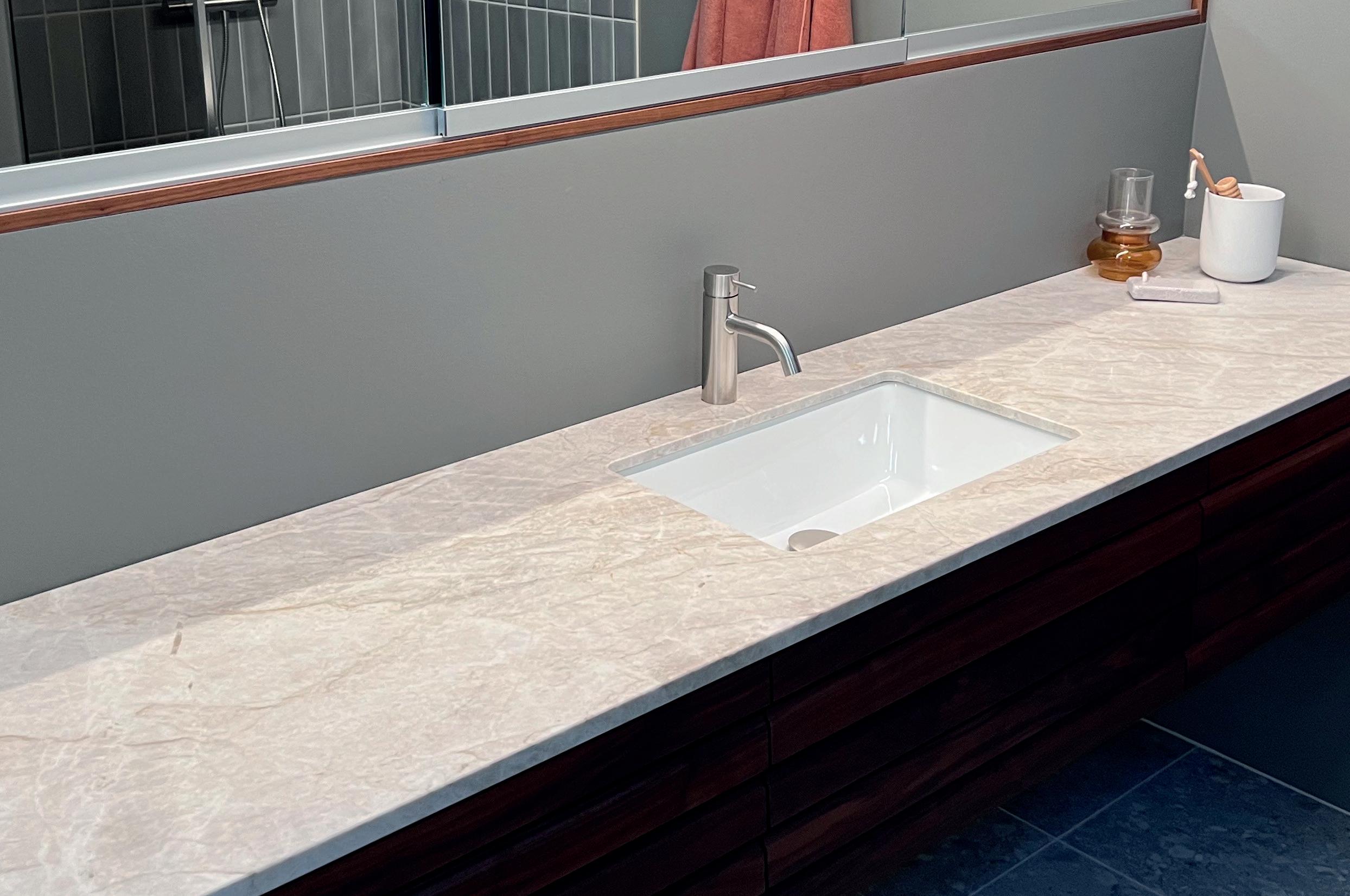 Se den perfekte sammenhæng mellem bordplade og vask.