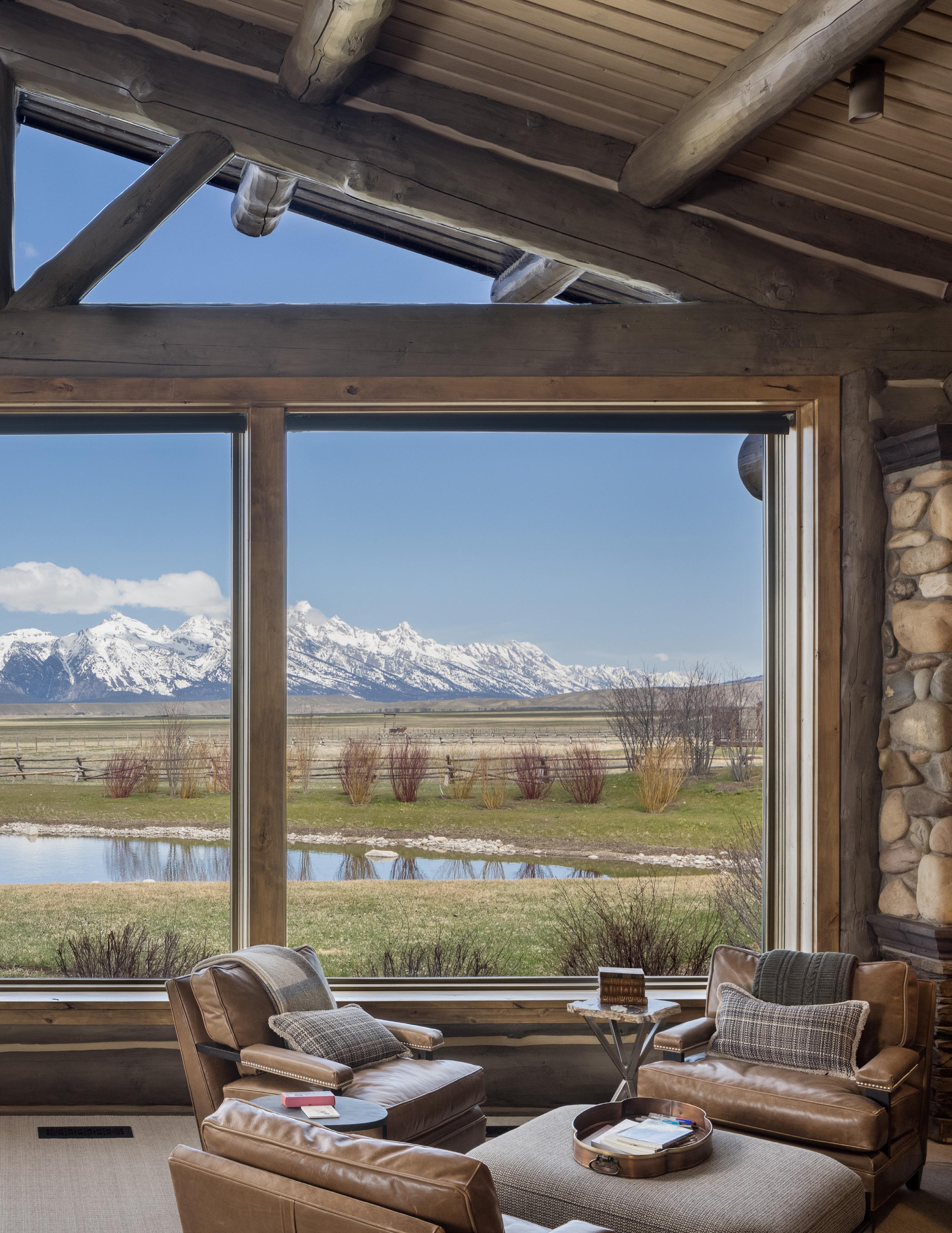 Inside, a modern refresh brings new life to the home, with updated furnishings and finishes that elevate the interiors while maintaining their warm, inviting character. Expansive windows capture sweeping views of the Tetons, making the outdoors an integral part of the living space.