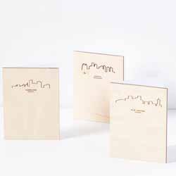 DESIGN: City skyline or coordinates with script or block font in black font Packaging: Wrapped in black string
