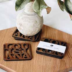 FINISH: Wood coasters - Water resistant poly finish PACKAGING: Wrapped in a GW white band There is no set up fee for new cities for this item - 2 case pack minimum.
