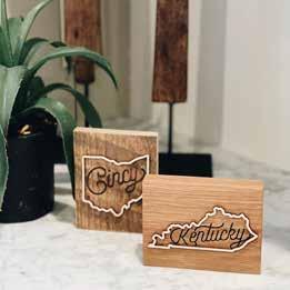 City or State name script is engraved into hardwood backing with state shape layered. BACKING MATERIAL: Reclaimed Barn Wood | Maple | Oak | Sapele | Walnut STATE MATERIAL: 1/8” Birch wood SIZE: 4” x 5” | 7” x 10” FINISH: Lacquer clear on hardwood, natural for barn wood and raised state shape MISC: Hanging hardware on back There is no set up fee for new cities for this item - 2 case pack minimum