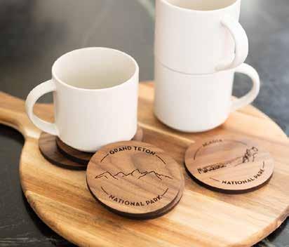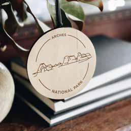 MATERIAL: 1/4” birch wood DESIGN: Park design engraved in center plus name of park surrounding the ornament SIZE: ~3.5”w x 3.5”h