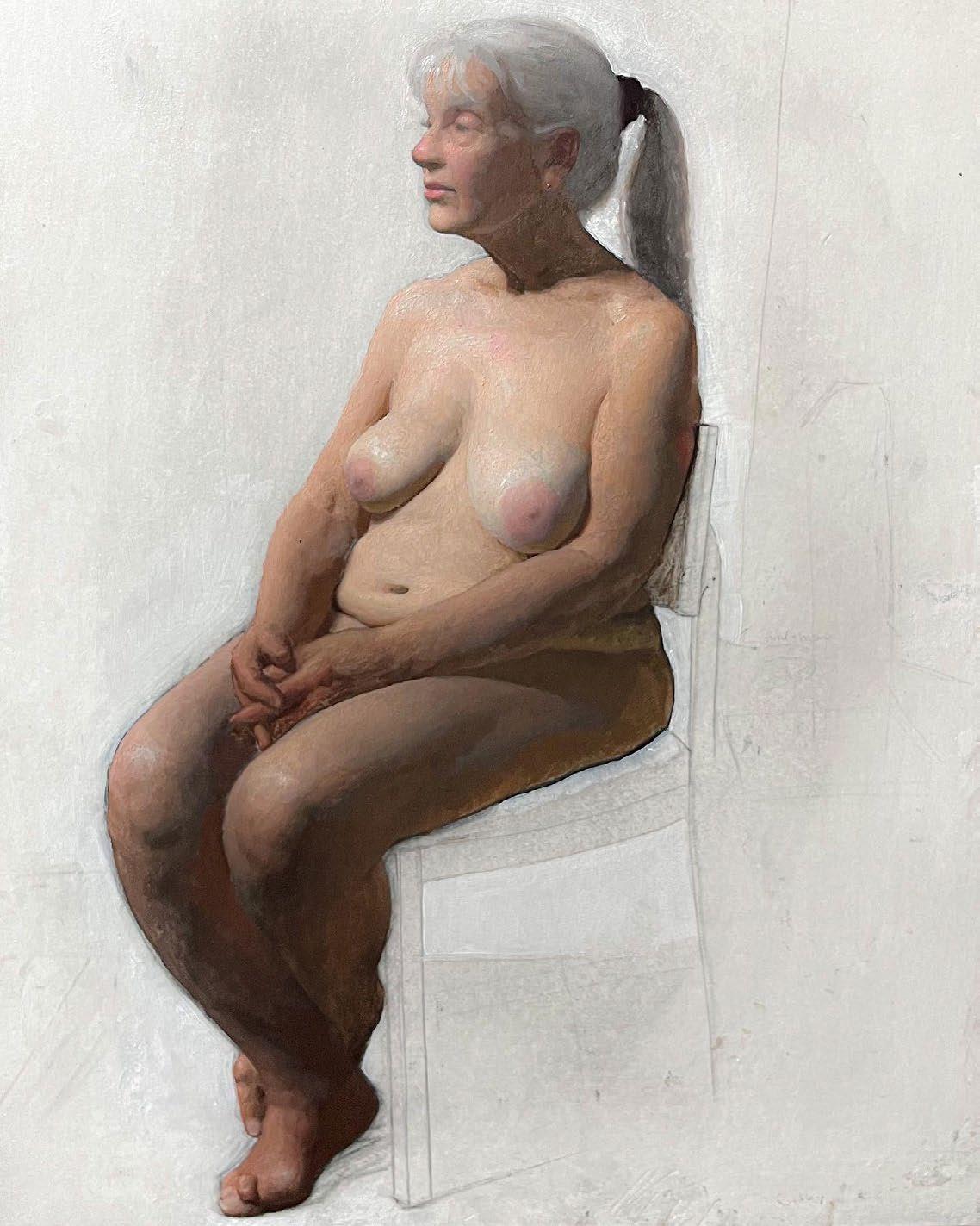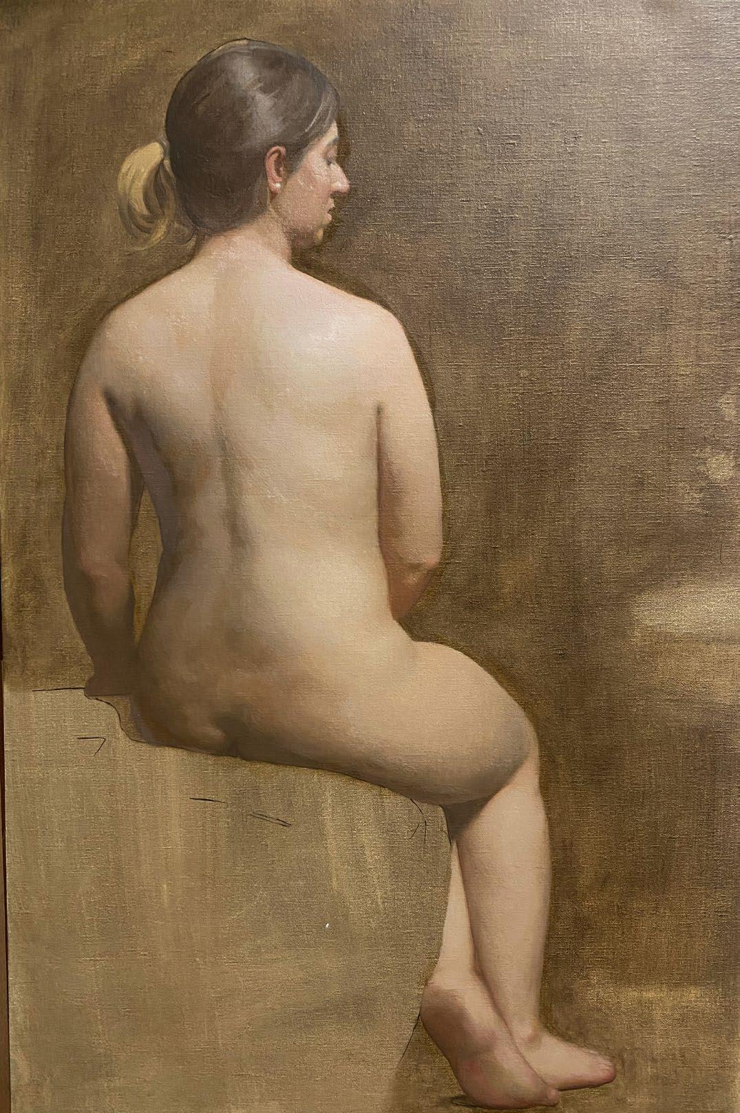 ACADEMIC FIGURE, SEATED WOMAN, 18”X 24”, OIL ON LINEN $3000