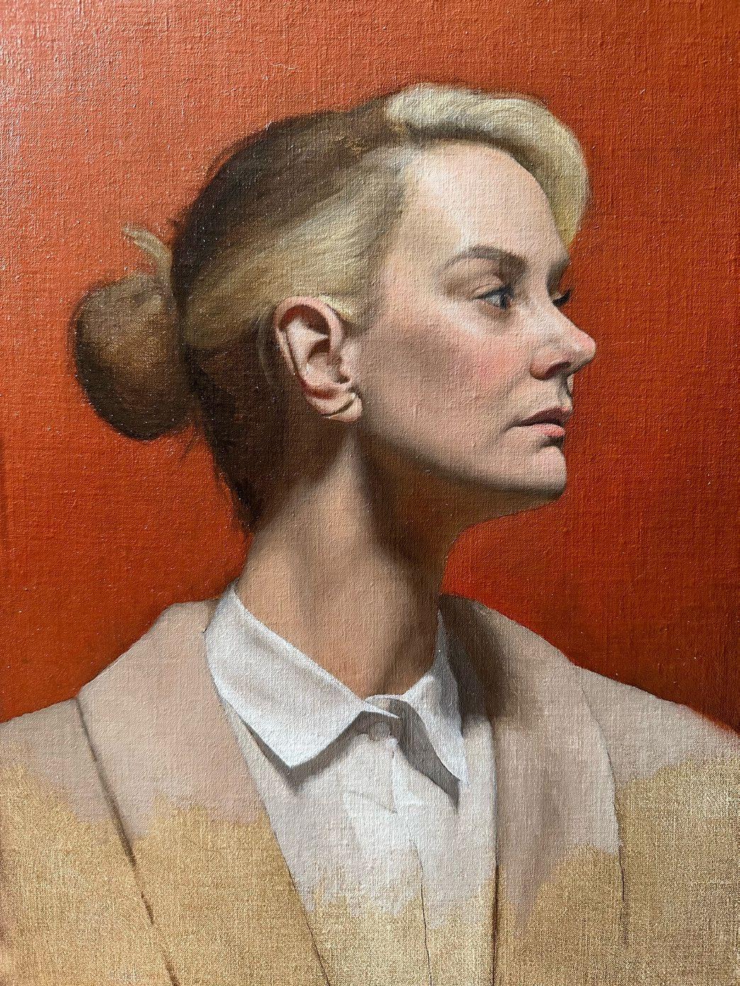 SELF PORTRAIT, 14”X 18”, OIL ON LINEN $2500