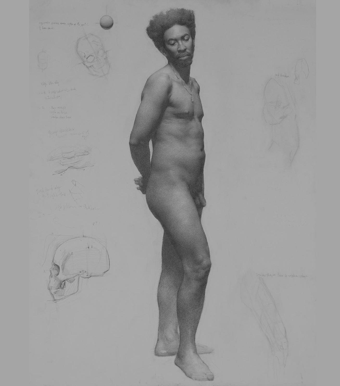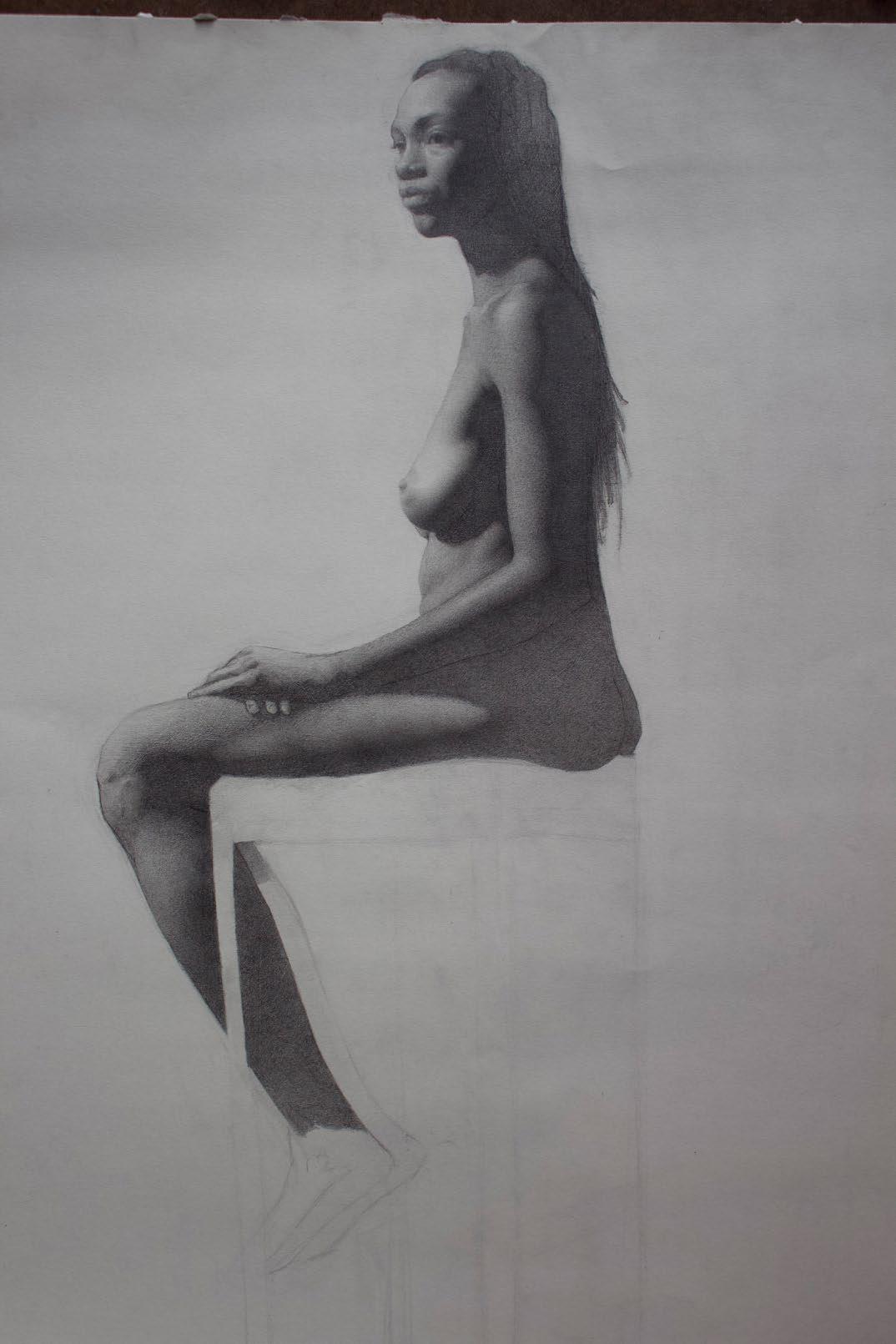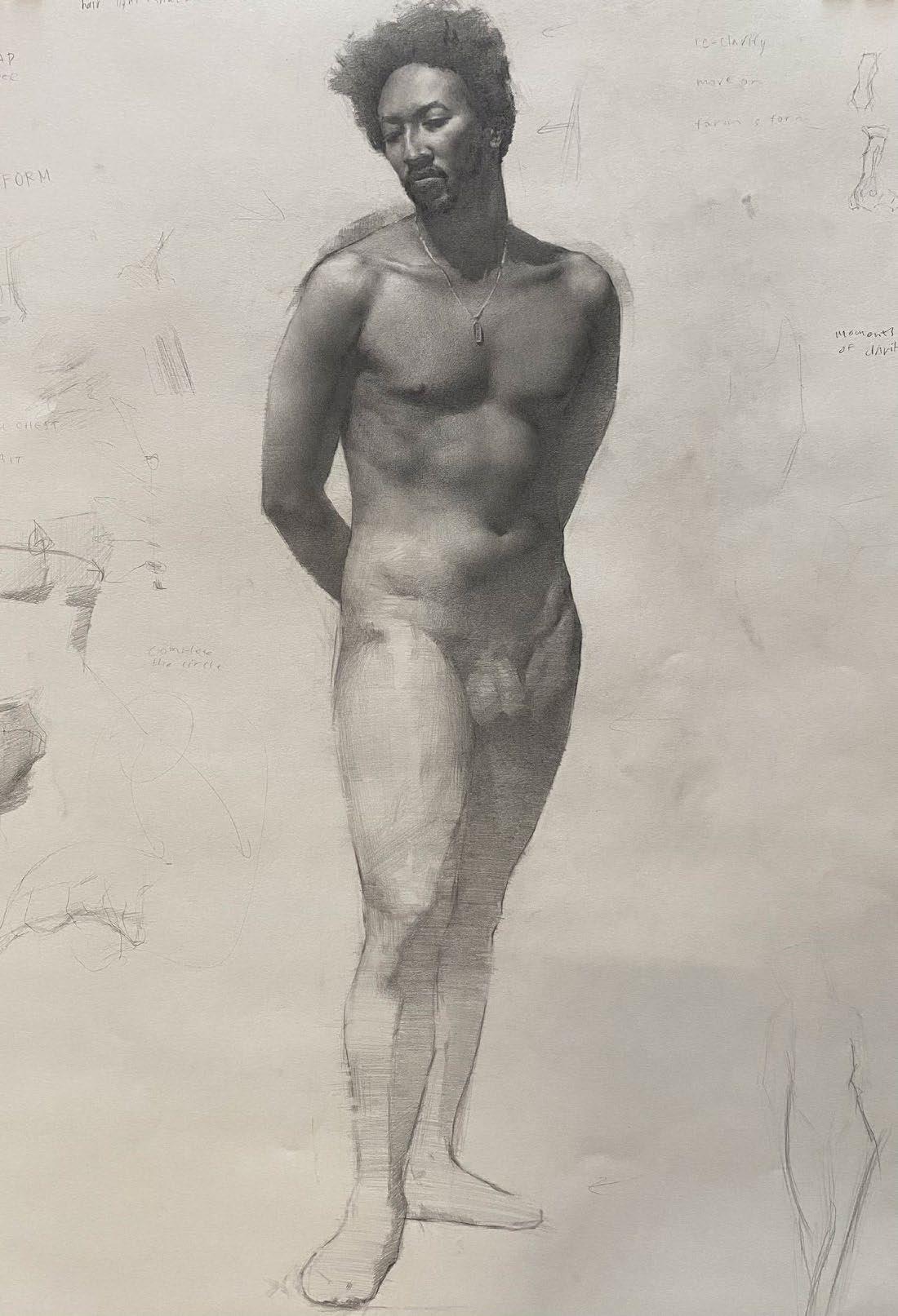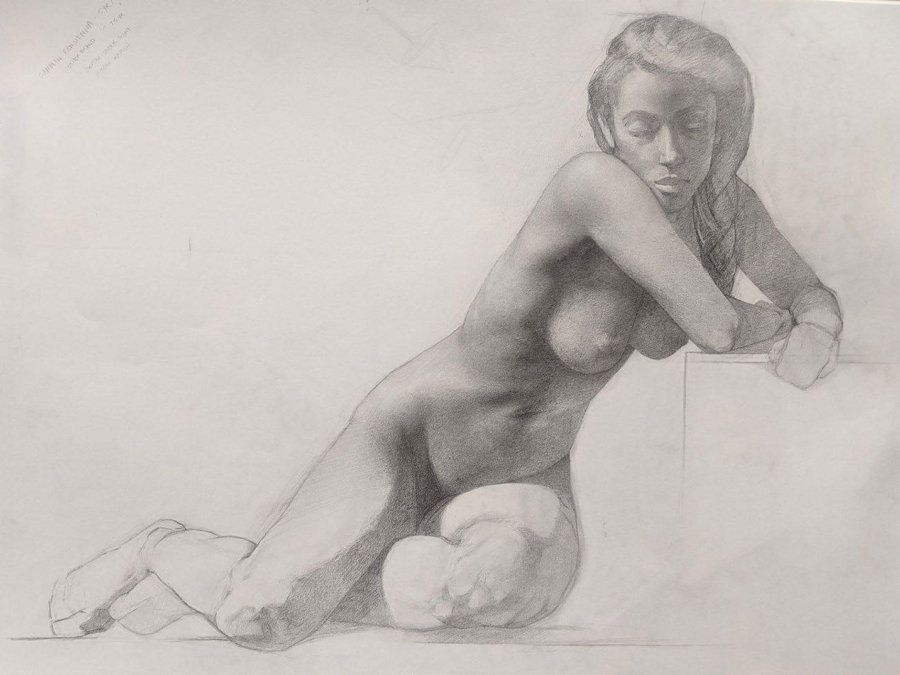 ASHARI FIGURE DRAWING, 18”X 26”, GRAPHITE ON PAPER $1500