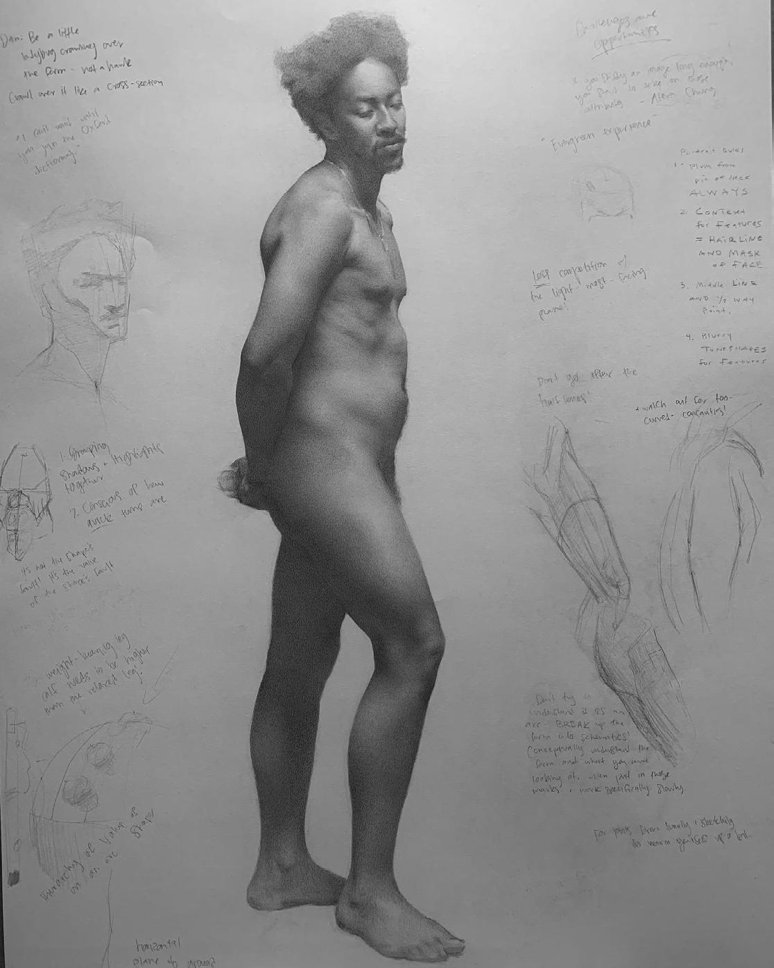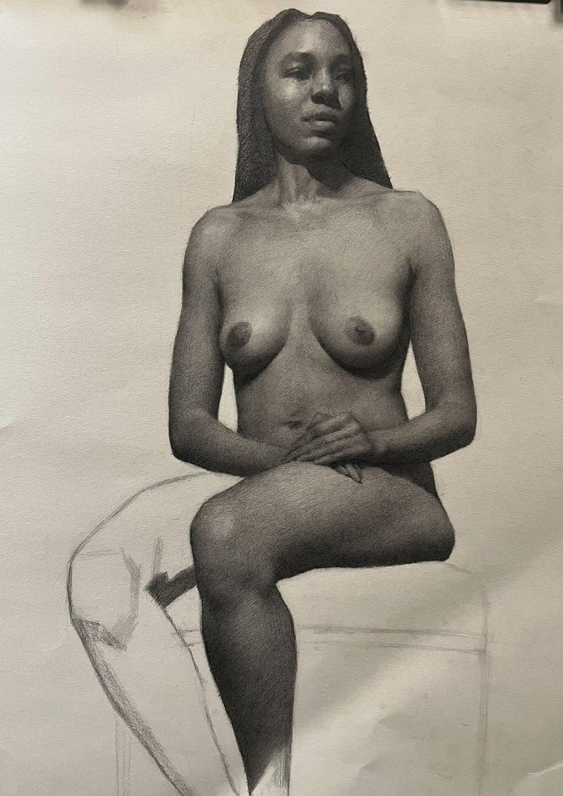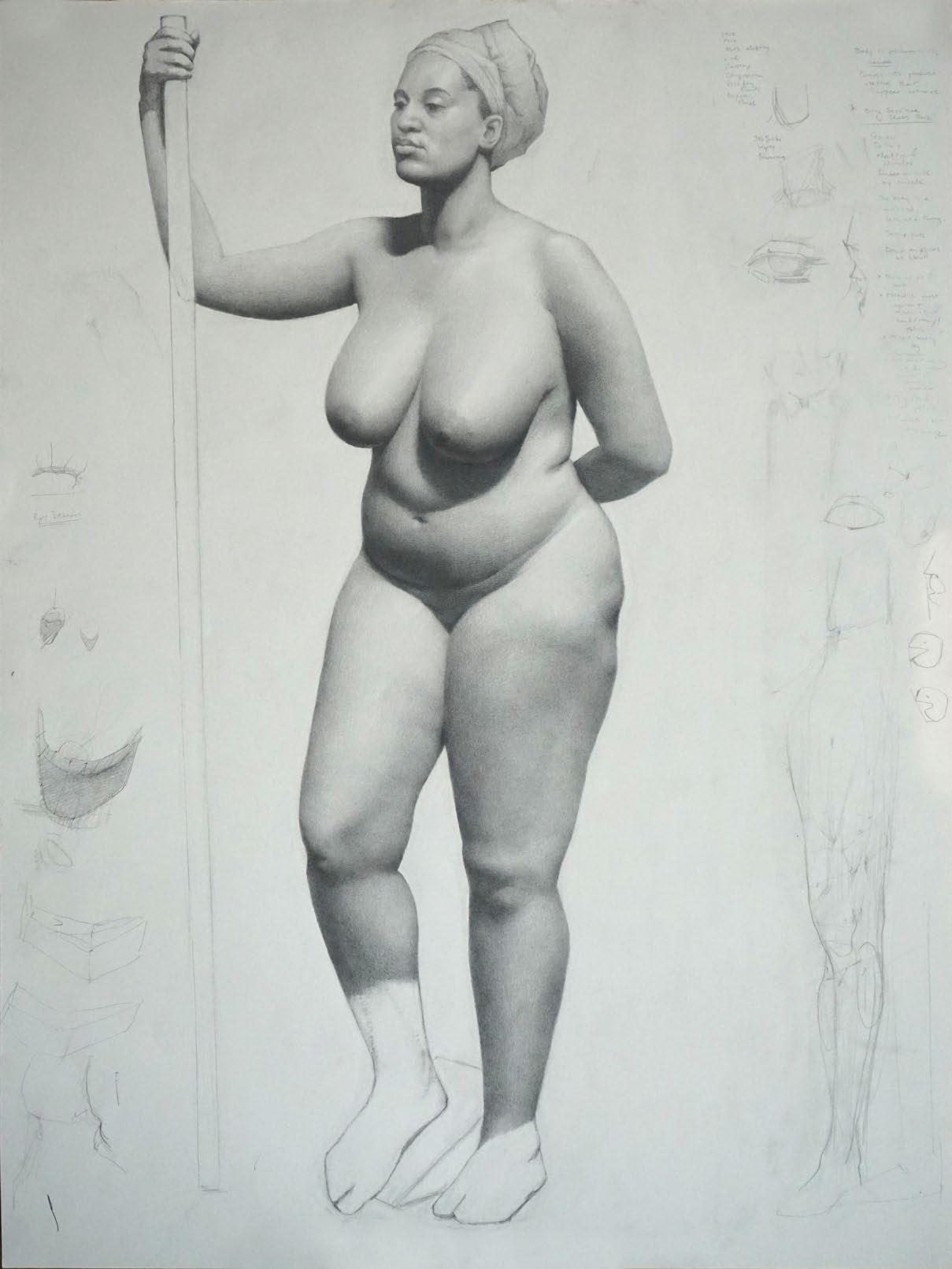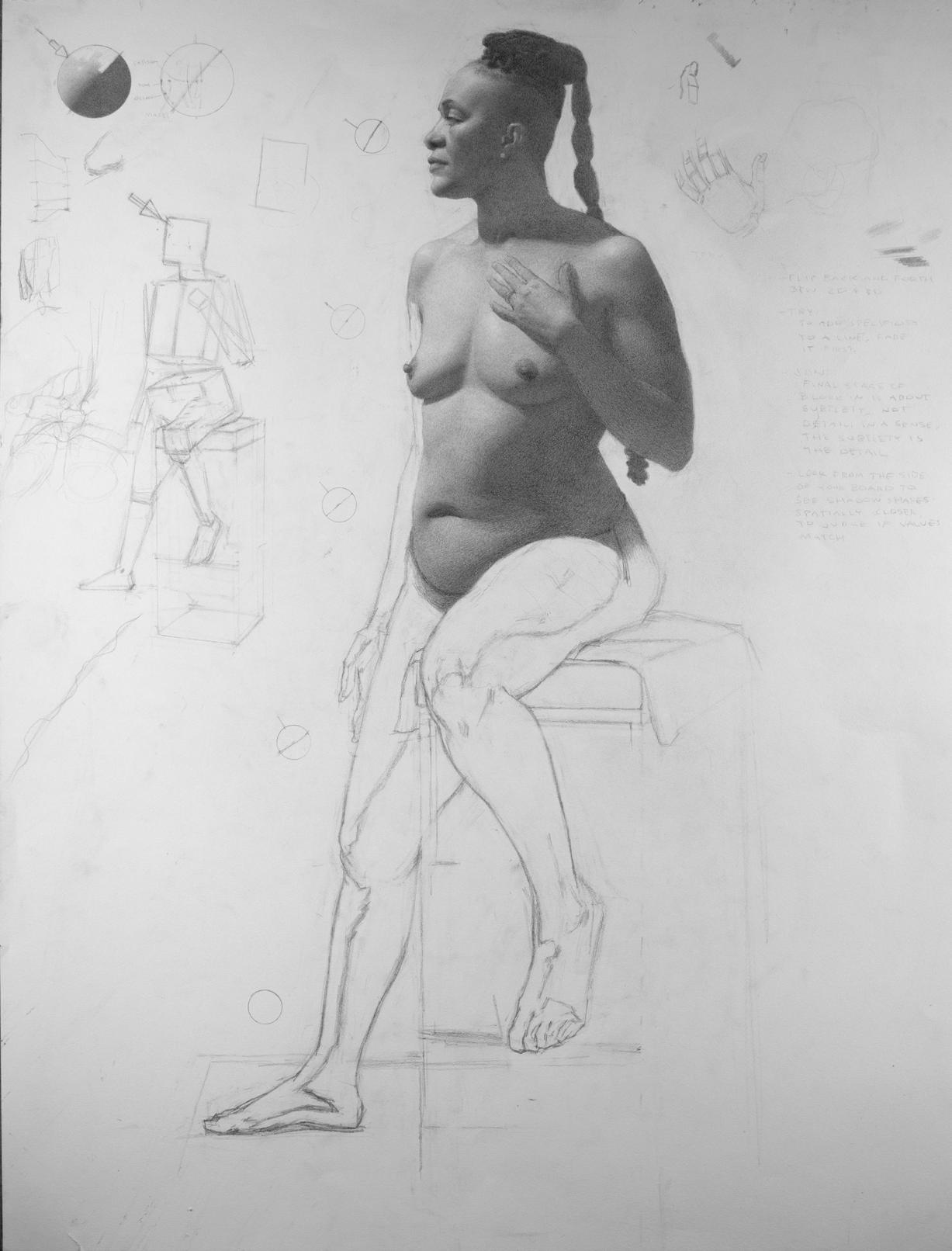 ASHARI FIGURE DRAWING, 18”X 26”, GRAPHITE ON PAPER $1500