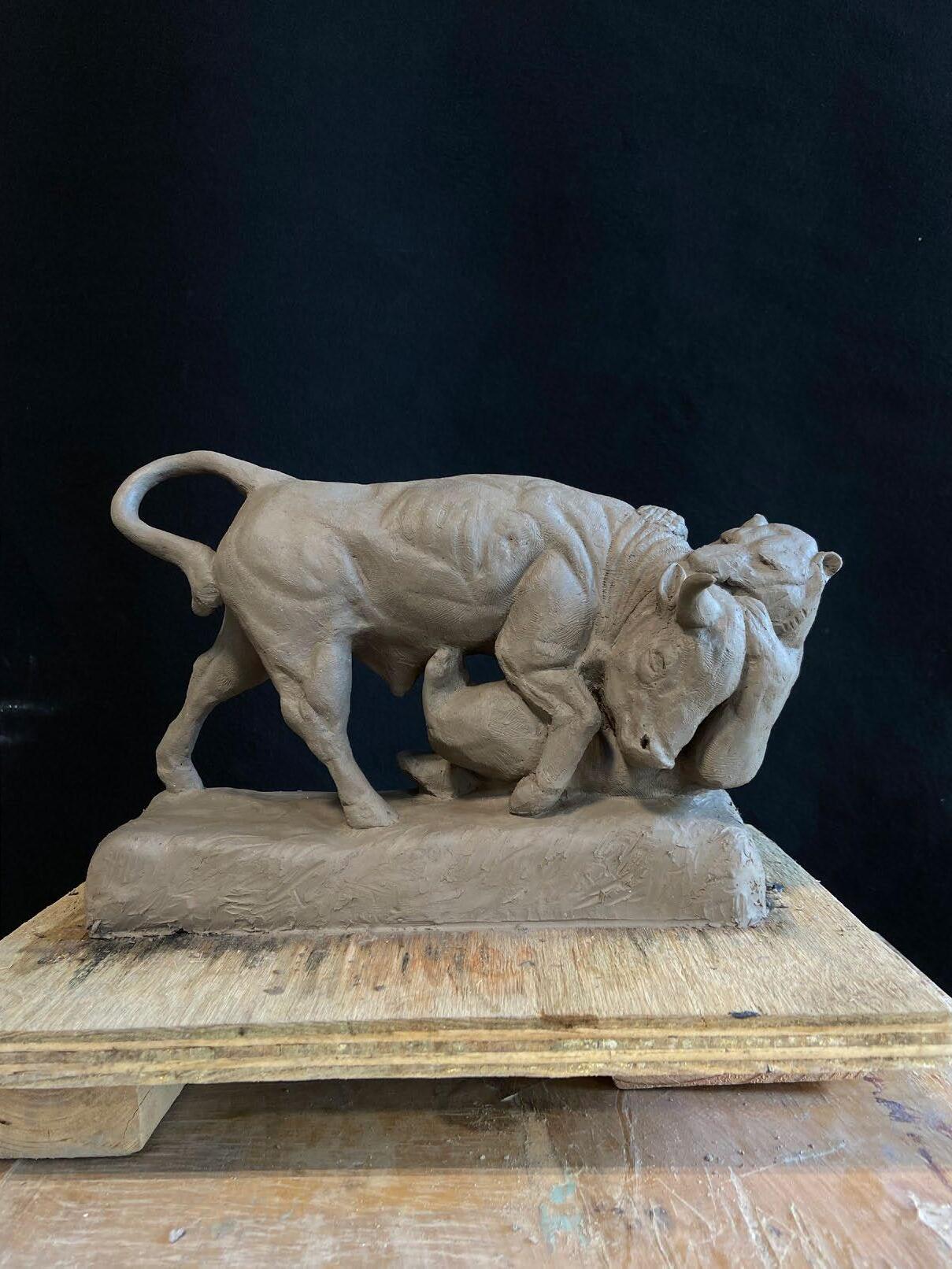 THE BULL AND THE BEAR, 3”X 8”X 11”, SINGLE CAST HYDROCAL $1000