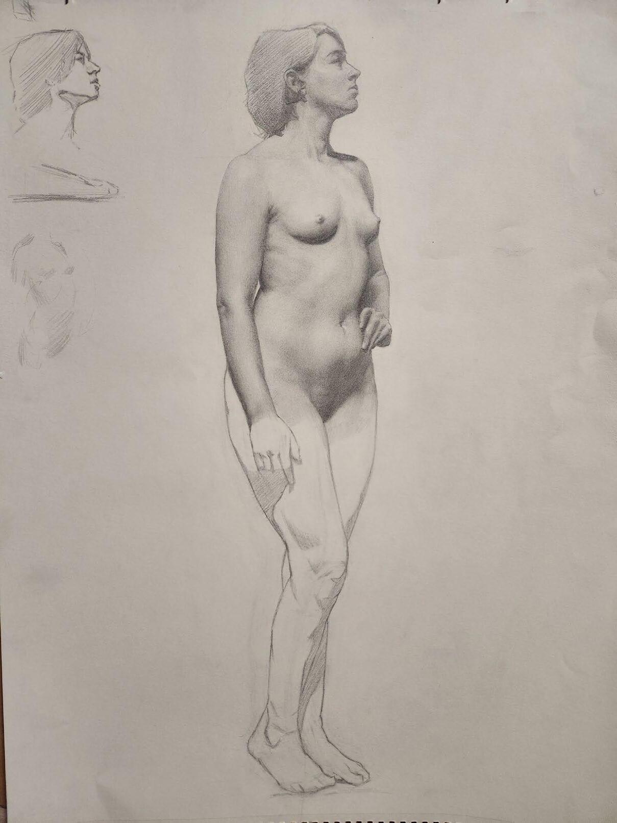 STANDING FEMALE FIGURE, 18”X24”, GRAPHITE ON PAPER $500