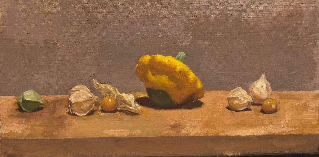 PATTY PAN AND HUSK CHERRIES, 5”X10”, OIL ON CANVAS PANEL $600