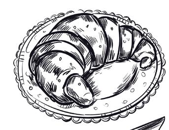 Basket of freshly baked croissants*, Danish pastries* and bread rolls