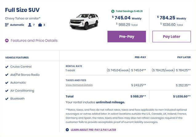 • Rent anything from smart cars to SUVs for all your road trip needs.