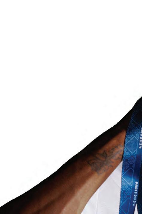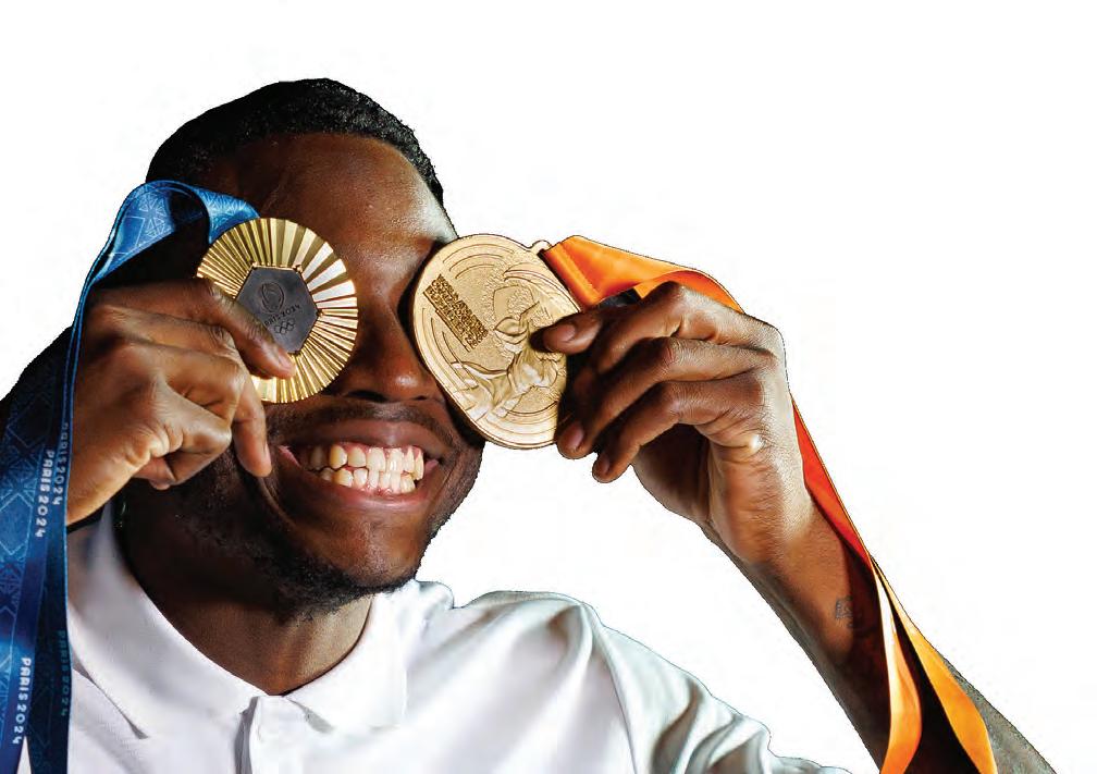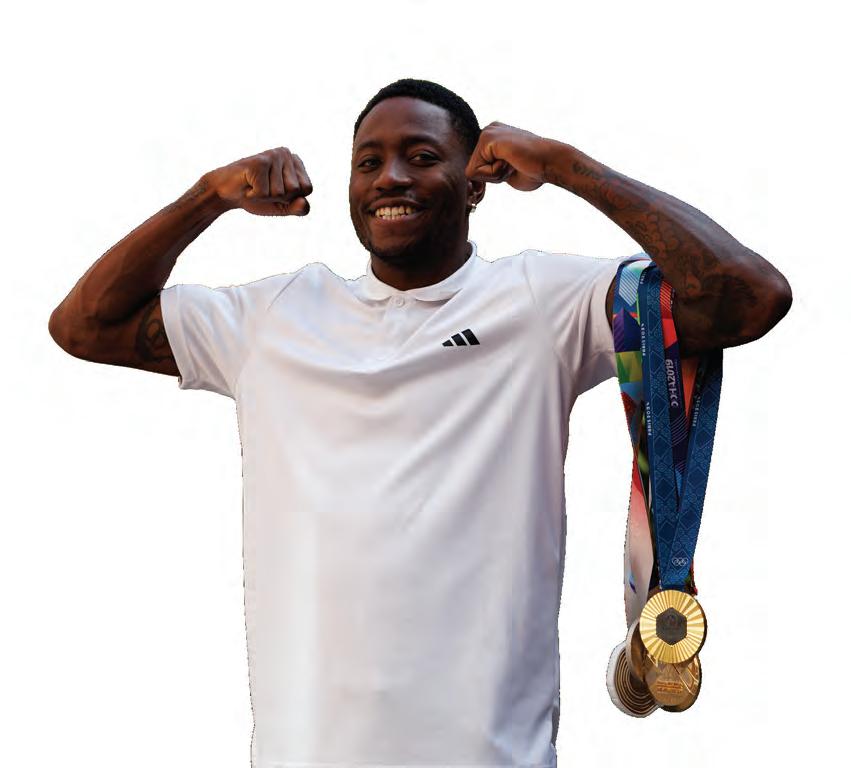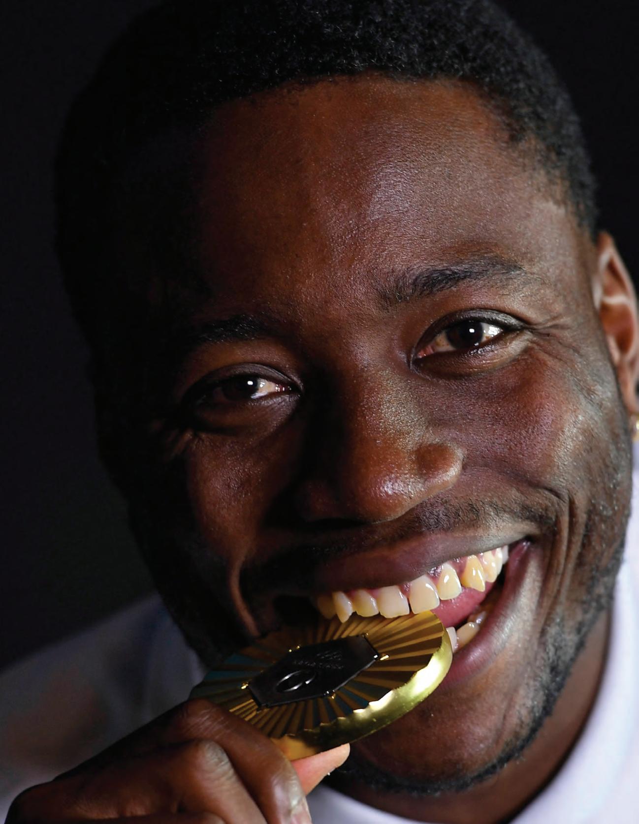 Our photo editor, Matthew Lewis, adjusted Holloway’s position so the light caught his eyes and glinted off the 2024 gold medal he brought home from Paris, while Caroline Walsh captured behind-the-scenes photos. Kevin Perez recorded the moment for our Grandstand social media accounts (follow us @grandstand_mag on Instagram and X). Holloway laughed with Shelby Hickman, the cover story’s author, as she asked how it felt to finally achieve his lifetime goal. We stood in the back, taking in the production, realizing we never expected to come this far this quickly.