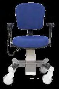 L’altezza del sedile è regolabile manualmente di 13 cm attraverso una leva (di serie a destra) azionabile con una sola mano. La larghezza tra i braccioli è regolabile da 40 a 65 cm, così come l’altezza dello schienale di 13 cm, quest’ultimo è reclinabile da 75° a 120° tramite l’apposita leva. MAG4 è fornita di serie in similpelle di colore nero. La seduta è movimentata tramite pistone oleodinamico.
