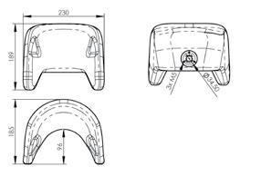 Poggiatesta in poliuretano morbido, lavabile, con struttura interna in materiale metallico modellabile per variare la larghezza delle alette di contenimento laterali secondo le esigenze. Adatto al contenimento del capo, senza pregiudicare il campo visivo laterale. Attacco posteriore con alloggiamento sferico regolabile in numerose posizioni.