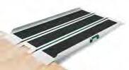 Rampa a piano unico e chiudibile in senso longitudinale per esser riposta con poco ingombro. Consigliata per gradini ed ostacoli fino a 35-45 cm (indicativamente) se l’utente utilizza una carrozzina elettrica o in presenza di un assistente. Maniglia per agevolare lo spostamento, superficie ad alto grip e fascia antiscivolo nella sezione a contatto con il dislivello da superare. Presenta due fori per un eventuale ancoraggio al gradino. Rampe a binario telescopiche a 3 sezioni Rampette per gradino/soglia in gomma