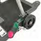Impugnature di presa e di spinta ergonomiche, mentre il supporto ginocchia e tibia, realizzato in e confortevole, è regolabile in altezza (5 posizioni) e presenta una fascia fermagambe con fibbia per mento indesiderato dell’utente sulla pedana.