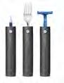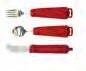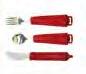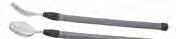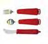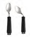 Posate orientabili grazie ad una sezione flessibile che esclude i movimenti del polso necessari per portare il cibo alla bocca. La lama arrotondata del coltello permette con un movimento “a dondolo” di tagliare le pietanze evitando le rotazioni del polso. Impugnatura confort grip per una presa agevole e sicura. Il cinturino dotato di chiusura a strappo per adeguare alle esigenze dell’utente l’ampiezza della presa consente di tenere ben saldo nel palmo della mano le posate.