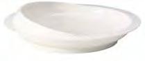 Questo piatto fondo con forma ovale è progettato per utenti emiplegici o con difficoltà nel controllo degli arti superiori per effetto dell'età o di patologie per agevolare i pasti utilizzando una sola mano. Infatti, la sua forma facilita la presa del cibo, accumulato e spinto più facilmente sul bordo più largo, inoltre i quattro piedini in gomma antiscivolo mantengono stabile il piatto sul tavolo o sul vassoio.