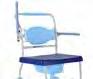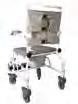 La carrozzina viene fornita con secchio WC e coperchio ed è chiudibile per essere riposta in poco spazio quando non utilizzata.