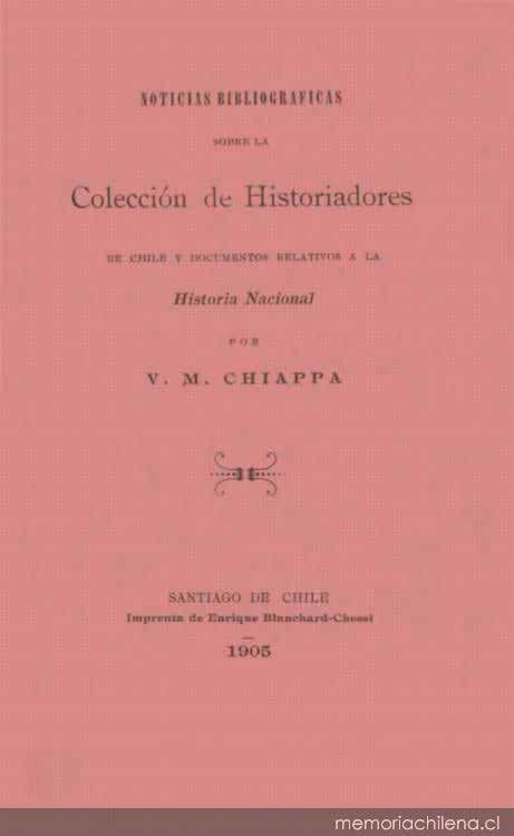 ensayo de 19 páginas titulado “Contribución a los estudios araucanos; nombres zoológicos mapuches, catalogados por V.M. Chiappa” . publicación que fue editada por la Imprenta El Comercio de Victoria el año 1901.
