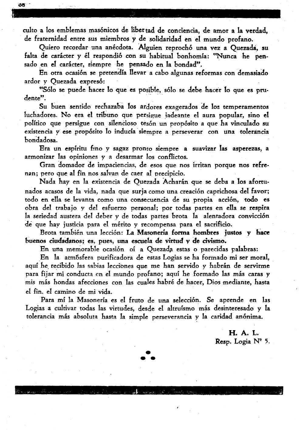 H. A. L. Resp. Logia N° 5.