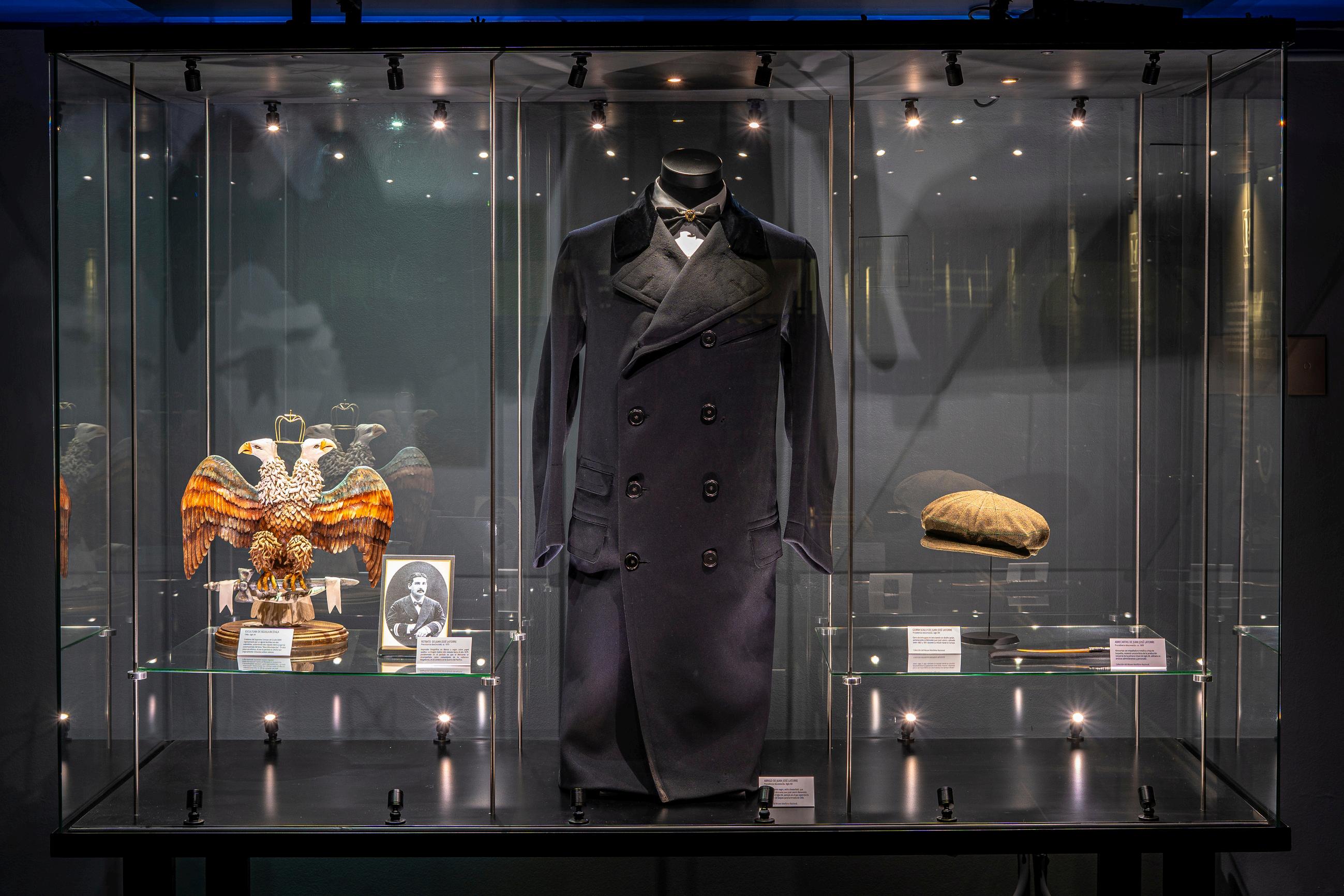 Abrigo de casimir negro, estilo chesterfield, que perteneció al Almirante Juan José Latorre Benavente.
