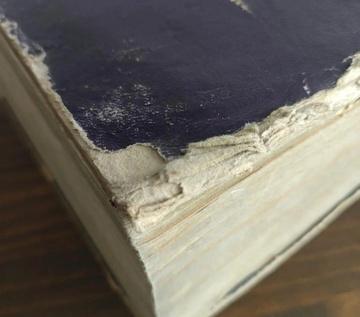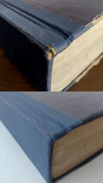 Reintegración de pérdidas: reconstrucción de puntas y cantos de las tapas, con papel japonés Kitakata de 36 g/m2