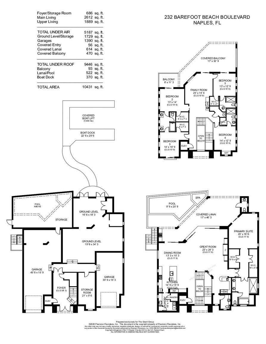 Stunning bayfront estate in North Naples’ premier community of Barefoot Beach offering sweeping water views, direct Gulf access from your private dock with a covered boat lift, deeded beach access just a 5-minute walk away, and exceptional indoor-outdoor living with an elevated pool and spa overlooking the bay.