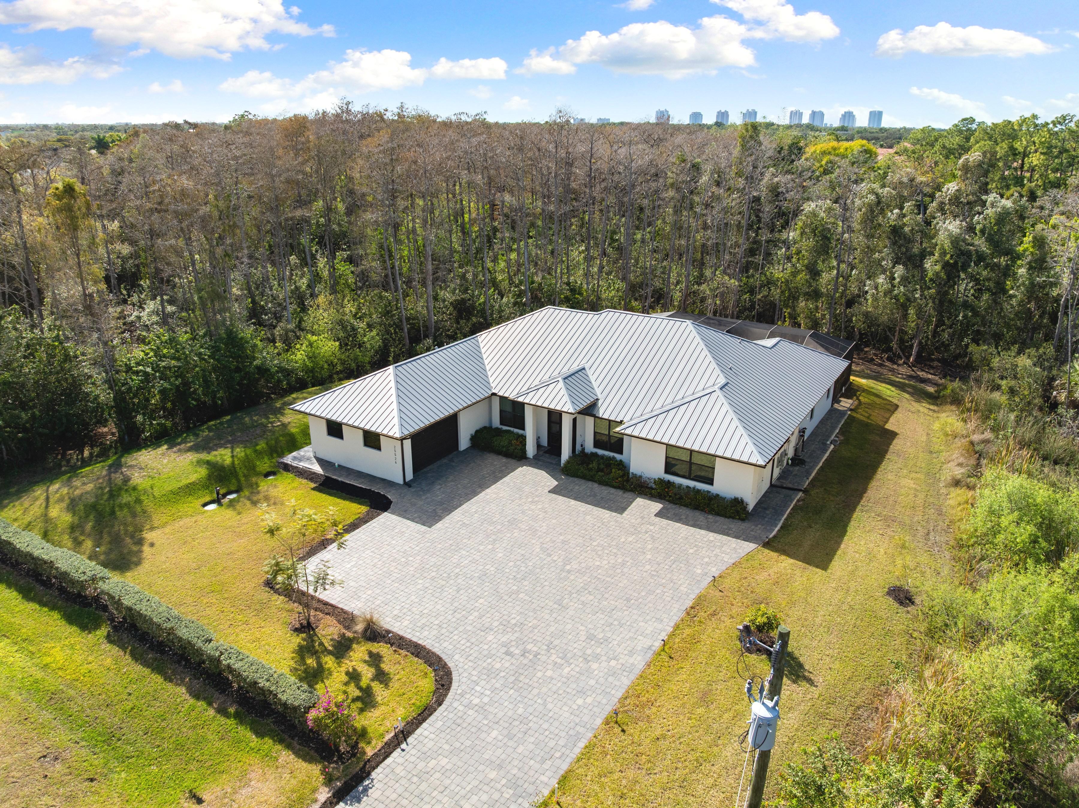 CUSTOM-BUILT 2021 NEW CONSTRUCTION POOL HOME ON A BEAUTIFULLY WOODED AND EXCEPTIONALLY PRIVATE 1.25-ACRE LOT IN BONITA SPRINGS’ HIGHLY COVETED “SAN CARLOS ESTATES!” INCREDIBLE floor plan with 3,746 sq ft under air including 5 bedrooms + 2 dens + formal dining space, including a private in-law suite with its very own living area, full bath, and separate entrance ideal for family or guests.