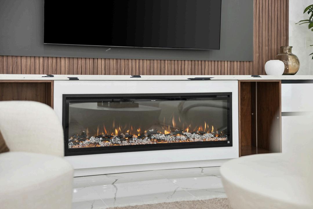 Sleek white cabinetry with warm wood accents