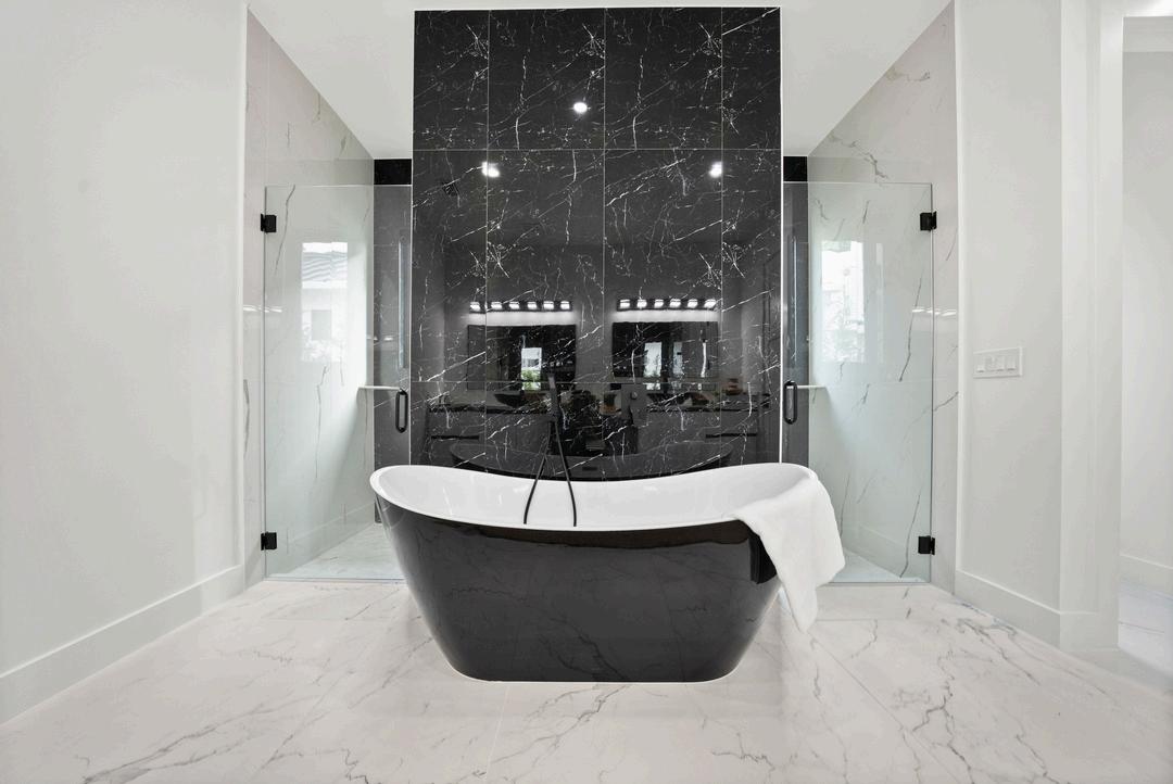 Spa-like bath with dual vanities