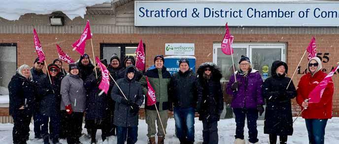As snow began to blanket Stratford and area, members of the Canadian Union of Public Employees (CUPE)’s Ontario Council of Hospital Unions (OCHU) held a rally outside of Perth-Wellington MPP Matthew Rae’s office.