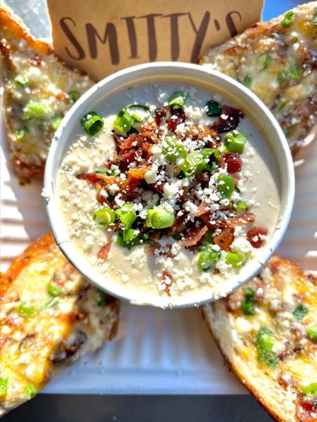 We make all of our Smitty’s Signatures Sauces in small batches daily, including our Roasted Poblano Crema, Our Rainbow Chimichurri and Our Avocado Roasted Garlic Aioli. ���� These sauces of ours pair perfectly with our Farm Style Street Tacos,���� That Carnivore Yum Bowl of ours, ���� The Farm Style Bowl ���� and of course that monstrosity of a Wrap ���� that we encrust in two-year aged extra sharp white cheddar. ����