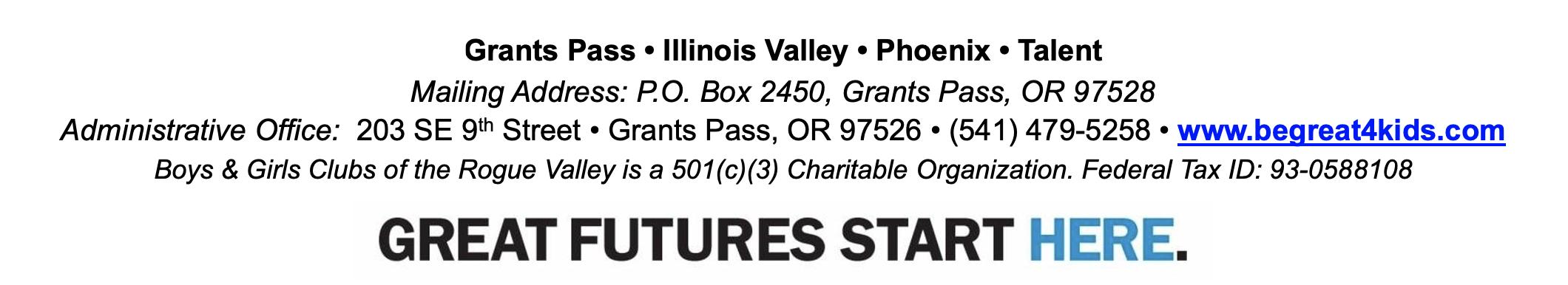 Boys & Girls Clubs of the Rogue Valley has been serving the youth of Southern Oregon since 1970 with a mission to provide year-round positive, fun, and safe places for all youth, helping them to build self-esteem and develop skills necessary to make right choices, and become responsible, productive citizens. For over 50 years, we have been at the forefront of youth development, dedicated to serving the young people of our communities and giving them greater access to quality programs and services that enhance their lives and shape their futures.