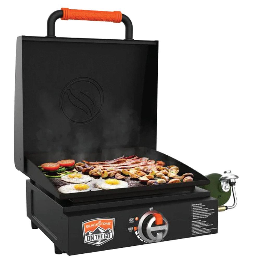 Introducing the Blackstone On The Go 17” Tabletop Griddle w/Orange Handle Hood. Cook anywhere with our classic 17” griddle now with a classically styled and painted hood with orange OTG handle grip. This 17” griddle is perfectly portable and packed with features.