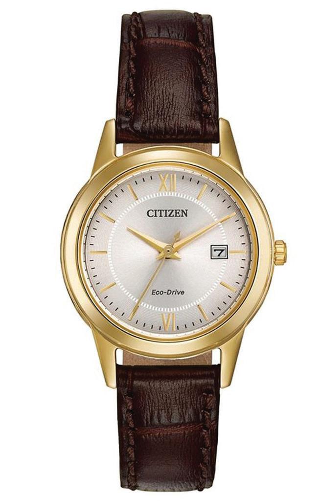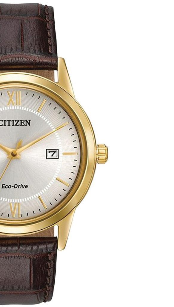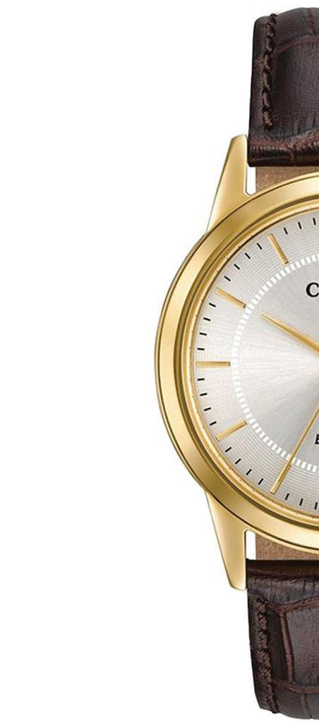 Keep it simple with the classic lines & rich leather strap of these men’sCitizen® strap watches. Featured with gold-tone stainless steel case, brown leather strap, ivory white dial with gold accents & date