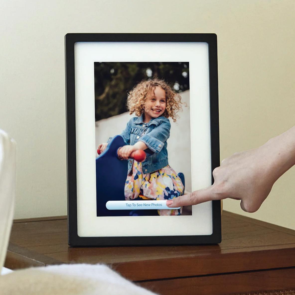 The Skylight Frame is a touchscreen digital picture frame that allows you to share photos with your loved ones almost instantly - from anywhere in the world. The Skylight Frame features a 10” color touchscreen, allowing you to easily pinch, crop and zoom, right from the frame. 10” Black.