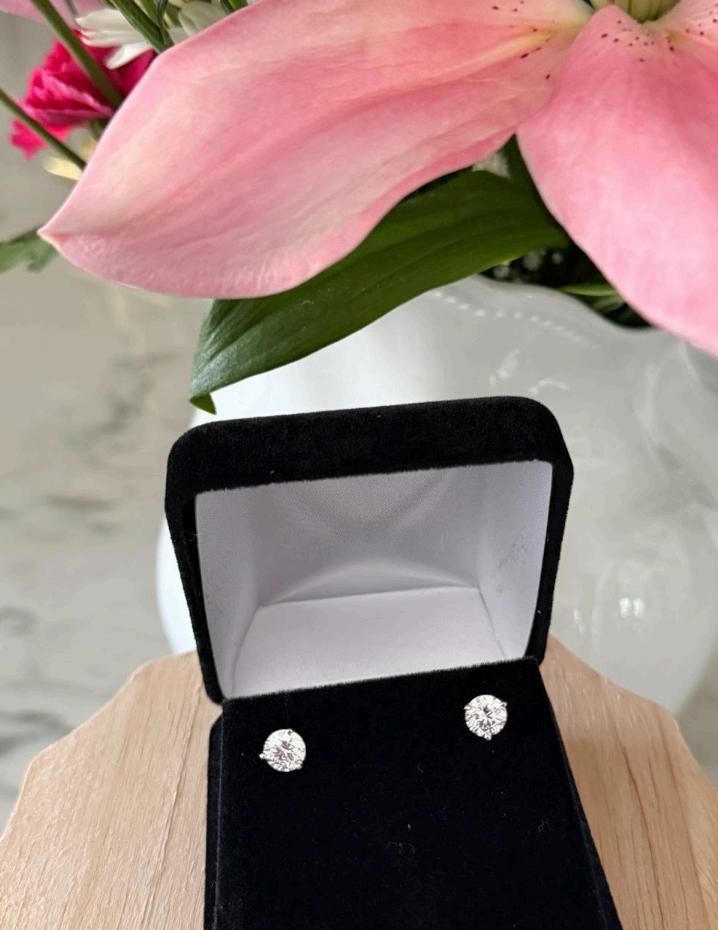 Prize: A stunning pair of 14k white gold round lab diamond stud earrings (2.05ct total weight).