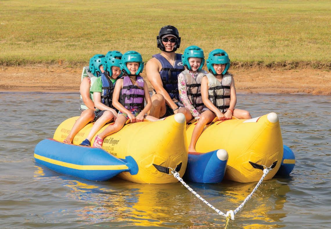 Choose from 99 full-hookup RV sites or seven climatecontrolled lakeside cabins, each one fully furnished with linens, a microwave, refrigerator, stove, Wi-Fi, and more. Cabins accommodate two to six people, making them perfect for families seeking both comfort and adventure. To reserve online, visit VineyardsCampground.com or call the park o ice at 817.329.8993 for availability.