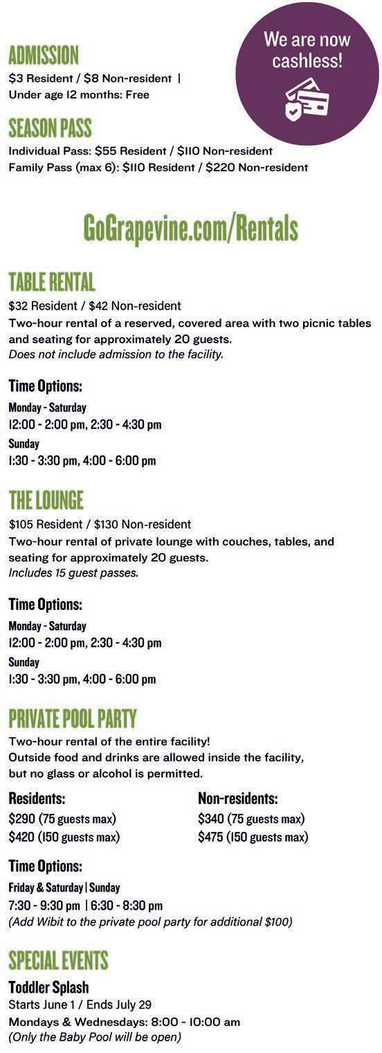 GRAPEVINE ANNUAL PASS PURCHASE LOCATIONS: