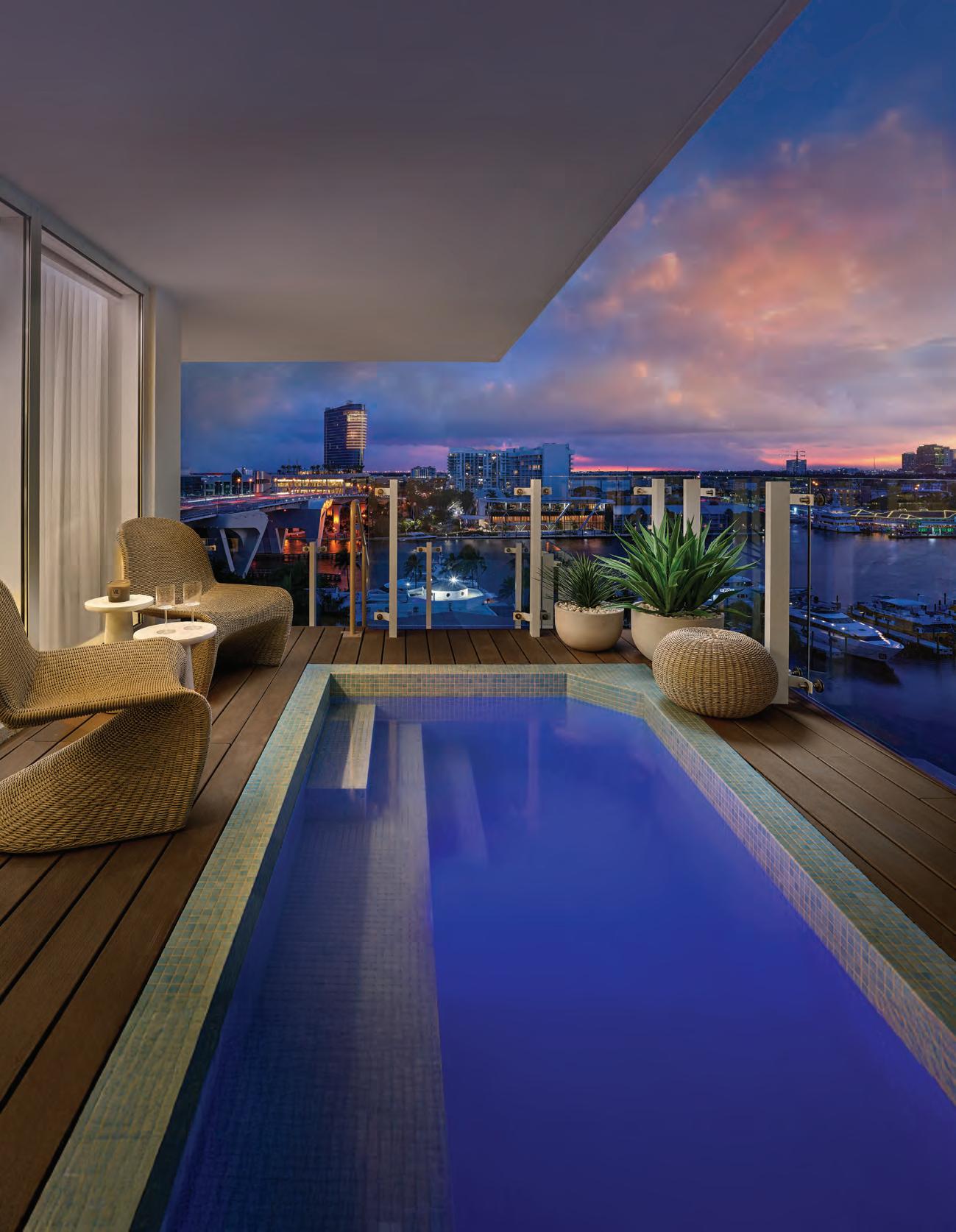 WHY IT’S SPECIAL: The Residences are being cra ed by an awardwinning design team including Nichols Architects, KORA, BAMO and Enea Landscape. The result is a property that seamlessly balances world-class design, modern amenities and Waldorf Astoria’s legendary service ethos. Inside, thoughtfully curated interiors complement sweeping ocean and Intracoastal views, while outdoors, lush landscaping and expansive terraces connect residents directly with their natural surroundings. The o ering is further elevated by a limited Penthouse Collection of four residences, each de ned by expansive wraparound terraces and uninterrupted ocean views that deliver an added level of privacy and exclusivity. With more than 75% of residences already sold, the project is set to become a de ning address for Pompano Beach when it delivers in 2027.