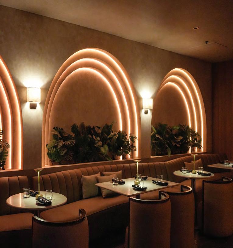 “The goal was to create a space that feels both elevated and welcoming. Re ned without being formal, and intimate without feeling small,” Blaise says. “Being in South Florida, we leaned into light, greenery, and indoor-outdoor transitions so the environment feels natural, relaxed, and memorable.”