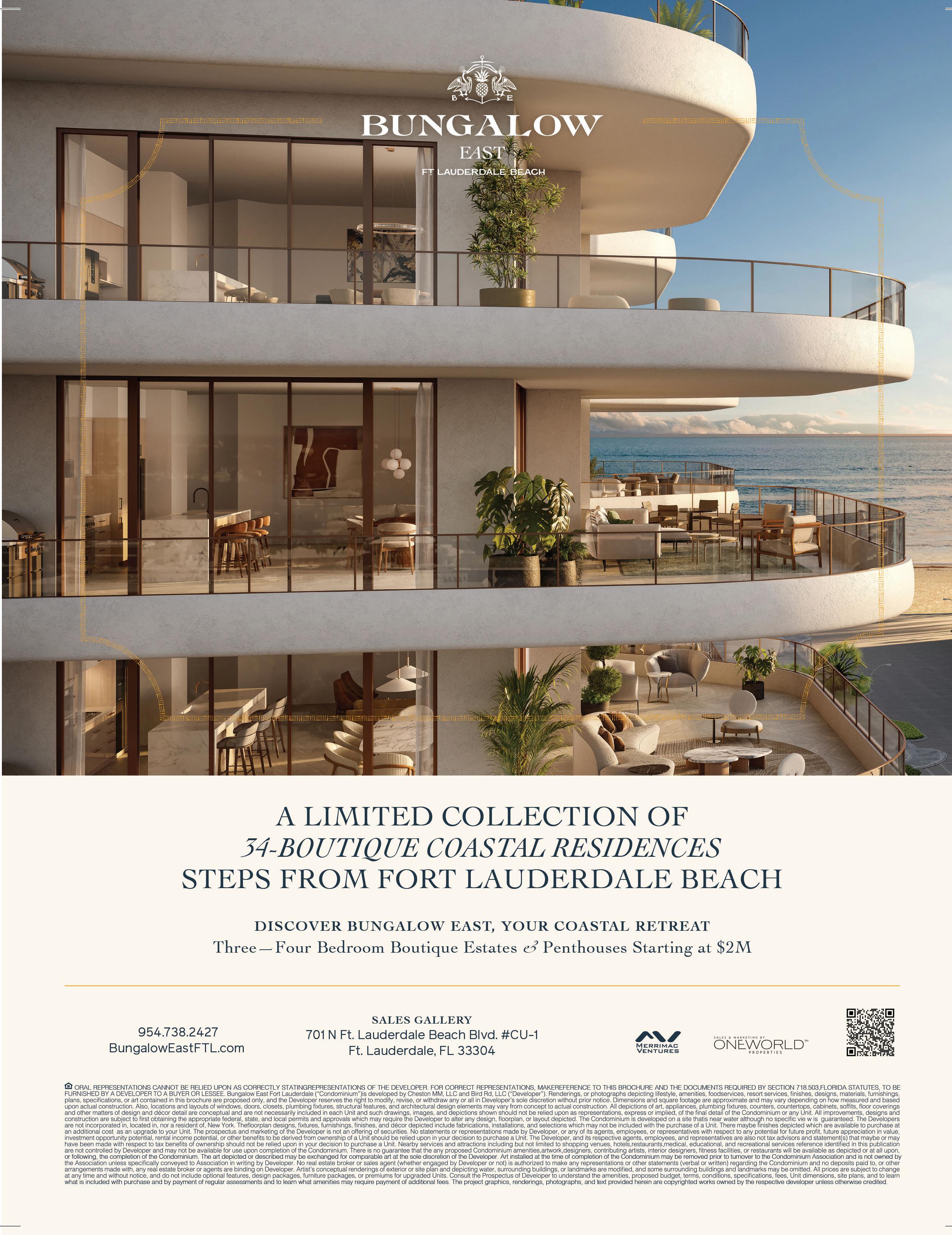 That sense of intimacy is precisely what de nes Bungalow East. The 14-story condominium, planned for a quiet stretch within North Beach Village, will introduce just 34 residences to the neighborhood—a deliberate counterpoint to the larger towers rising along the coastline. In a market where luxury developments often emphasize scale, Bungalow East makes a quieter argument: fewer homes, more privacy, and a residential experience designed to feel like a private coastal retreat.