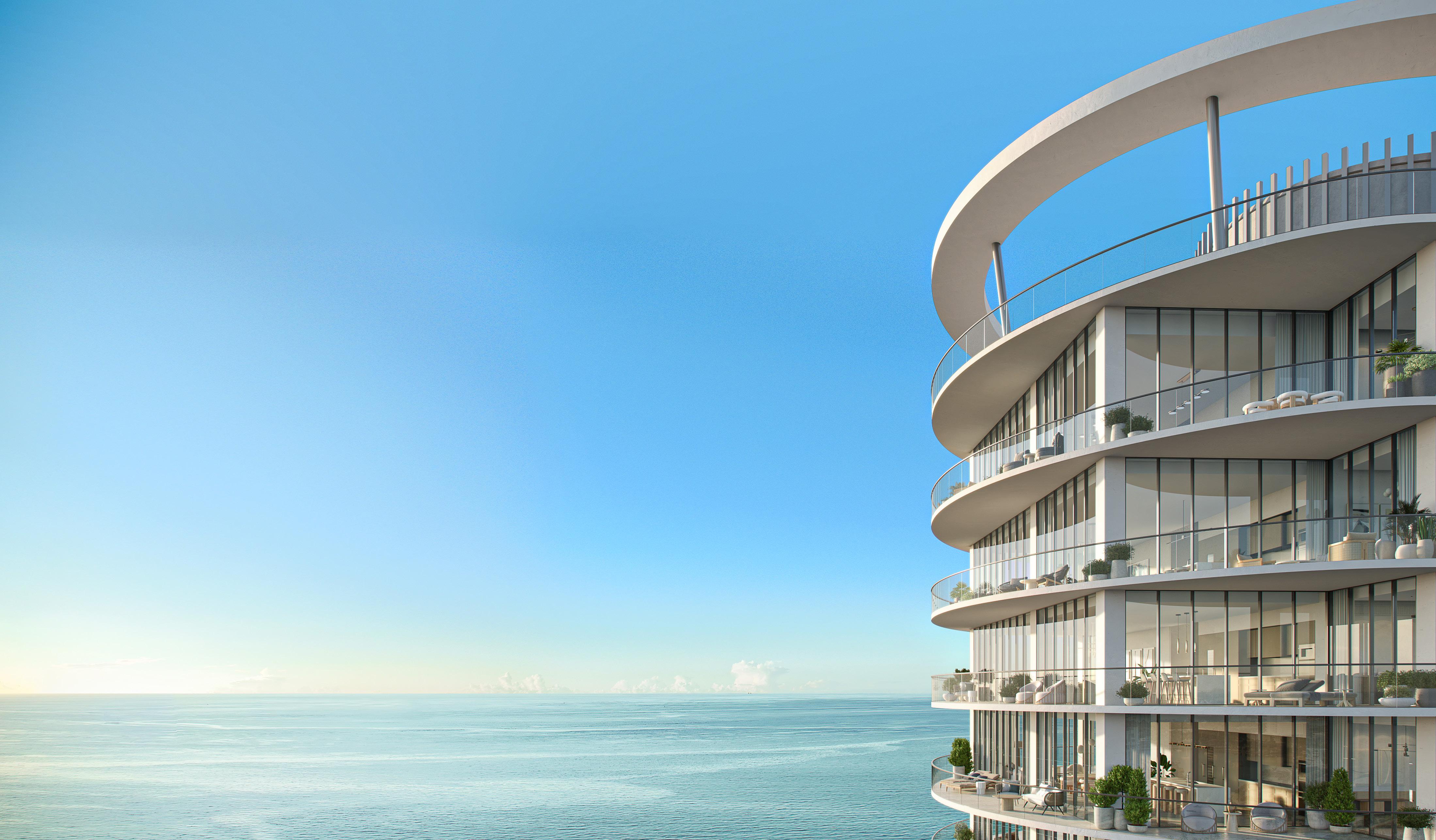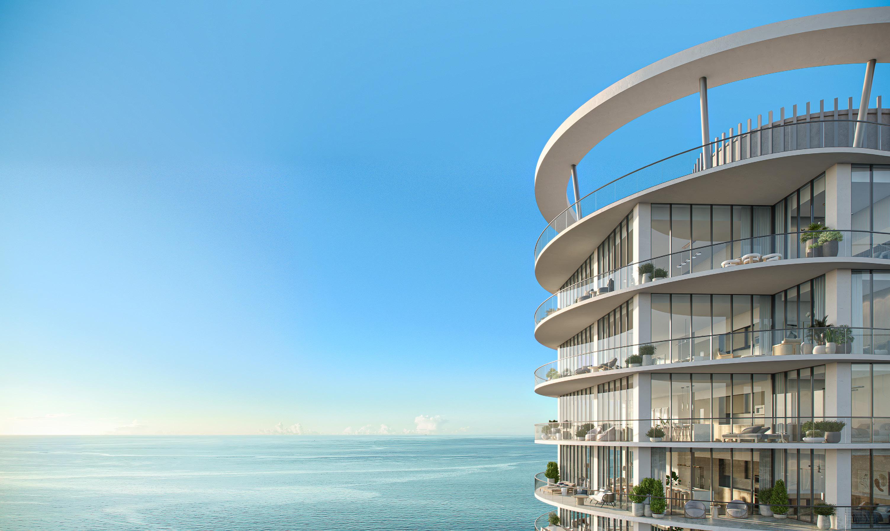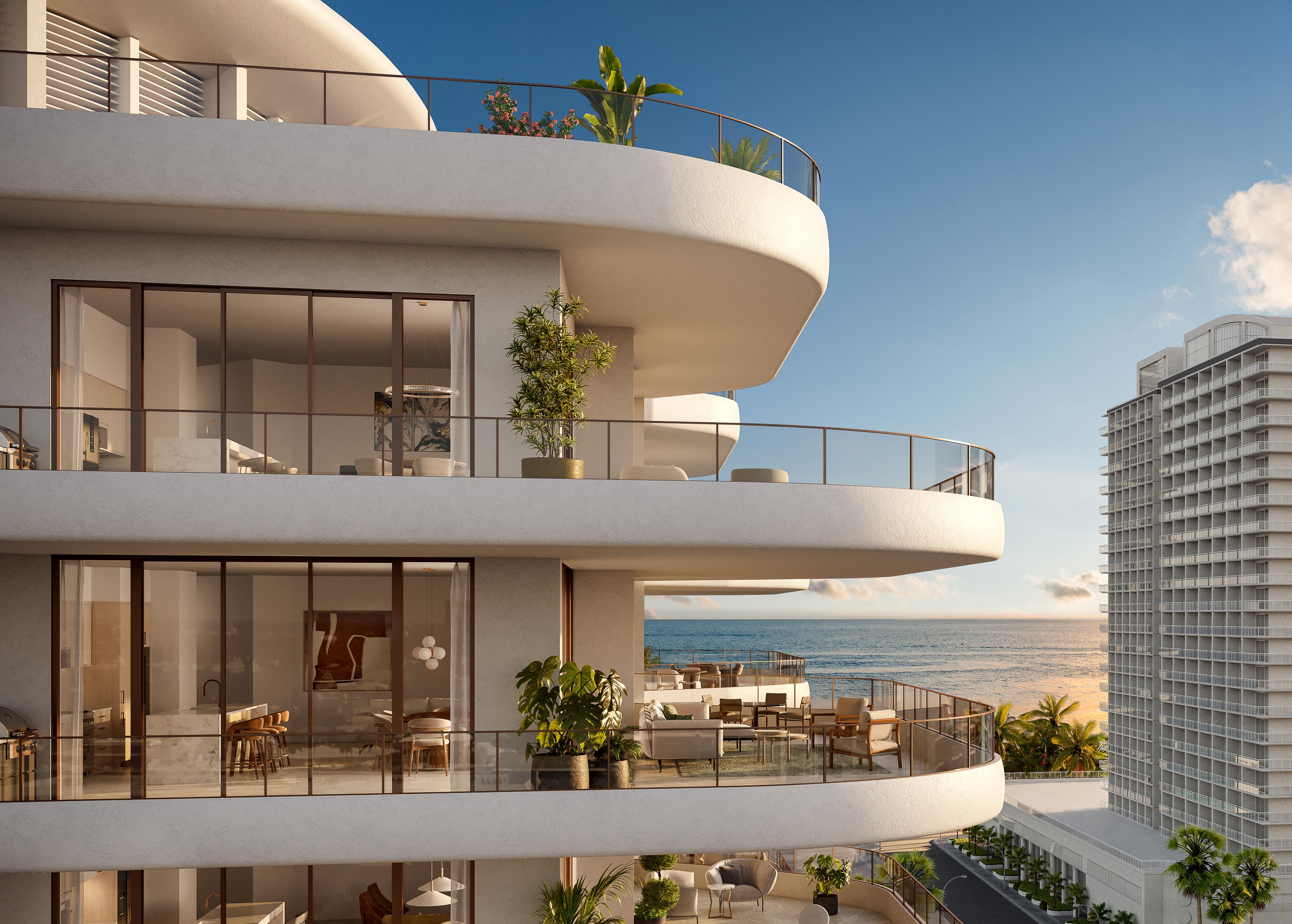 The scale is intentional. Rather than competing with larger towers along the coast, the project emphasizes proportion, privacy, and design.