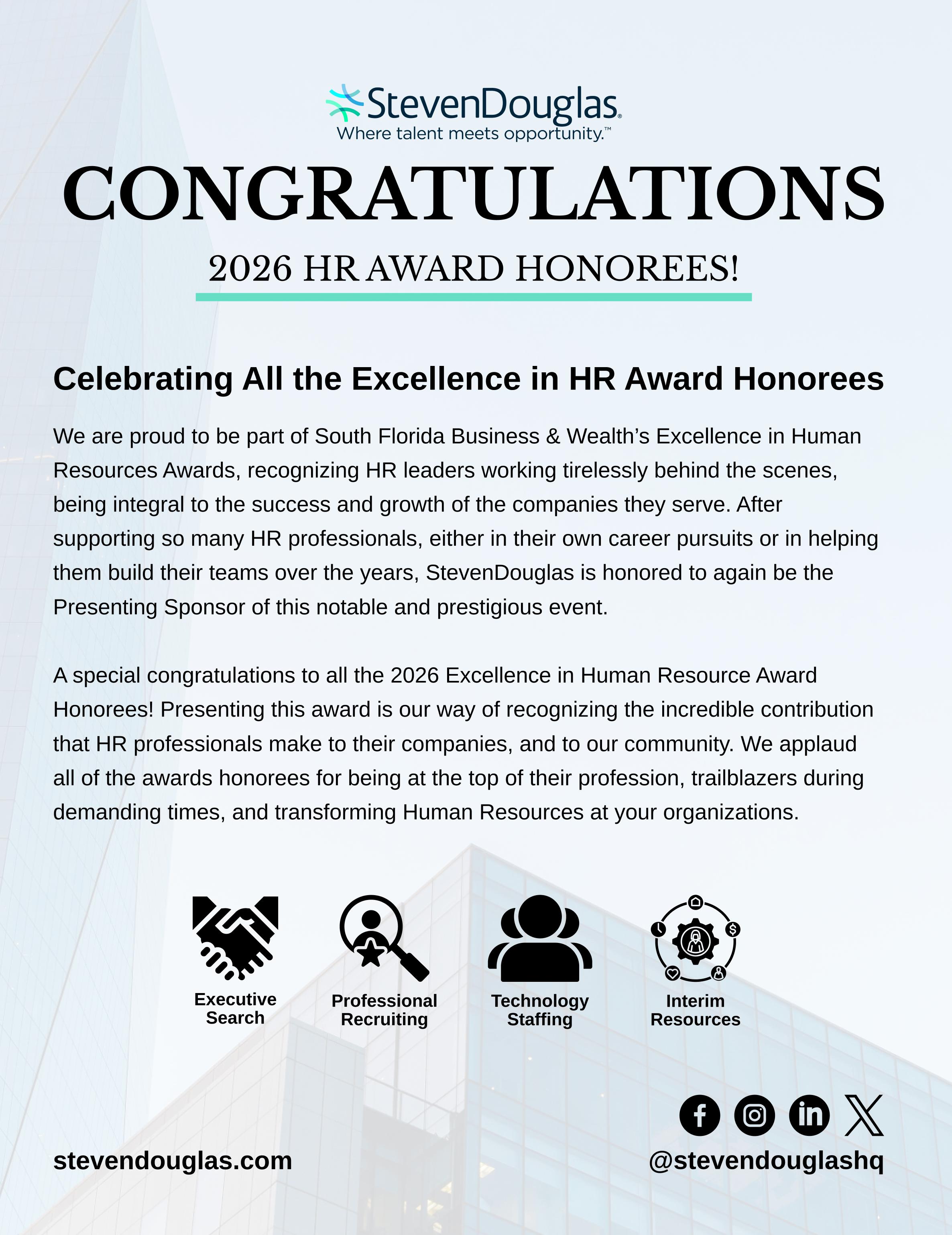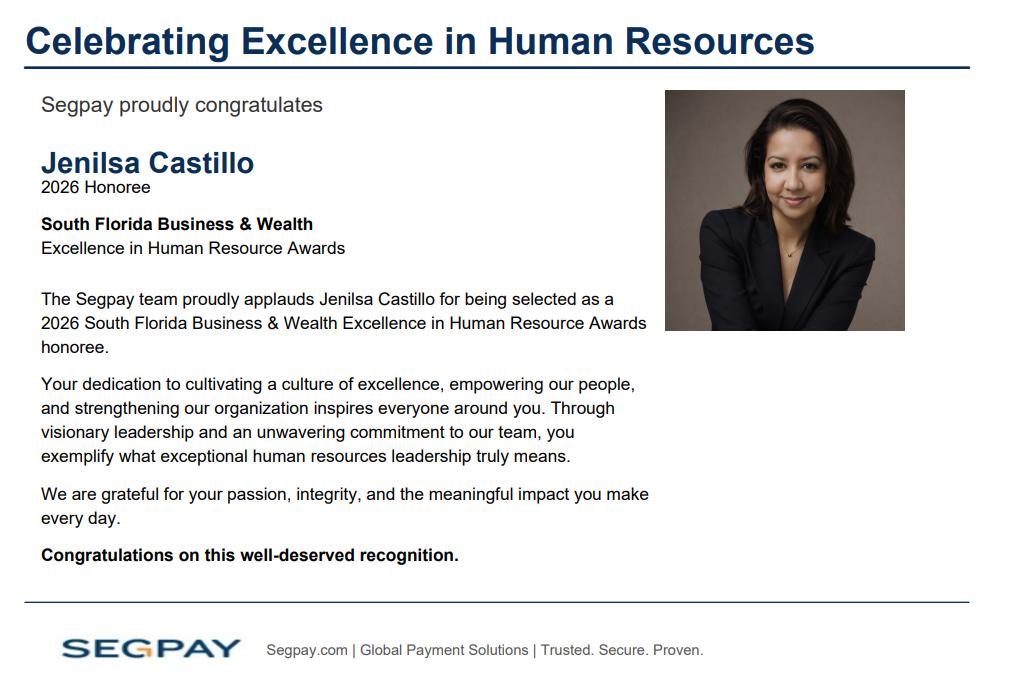 On being an honoree at the 2026 South Florida Business & Wealth Excellence in Human Resources Awards! Riverside Hotel truly values the leadership, care, and expertise you bring to the team each day. Your commitment to fostering a positive workplace culture and supporting employee growth makes a meaningful impact across our entire organization.