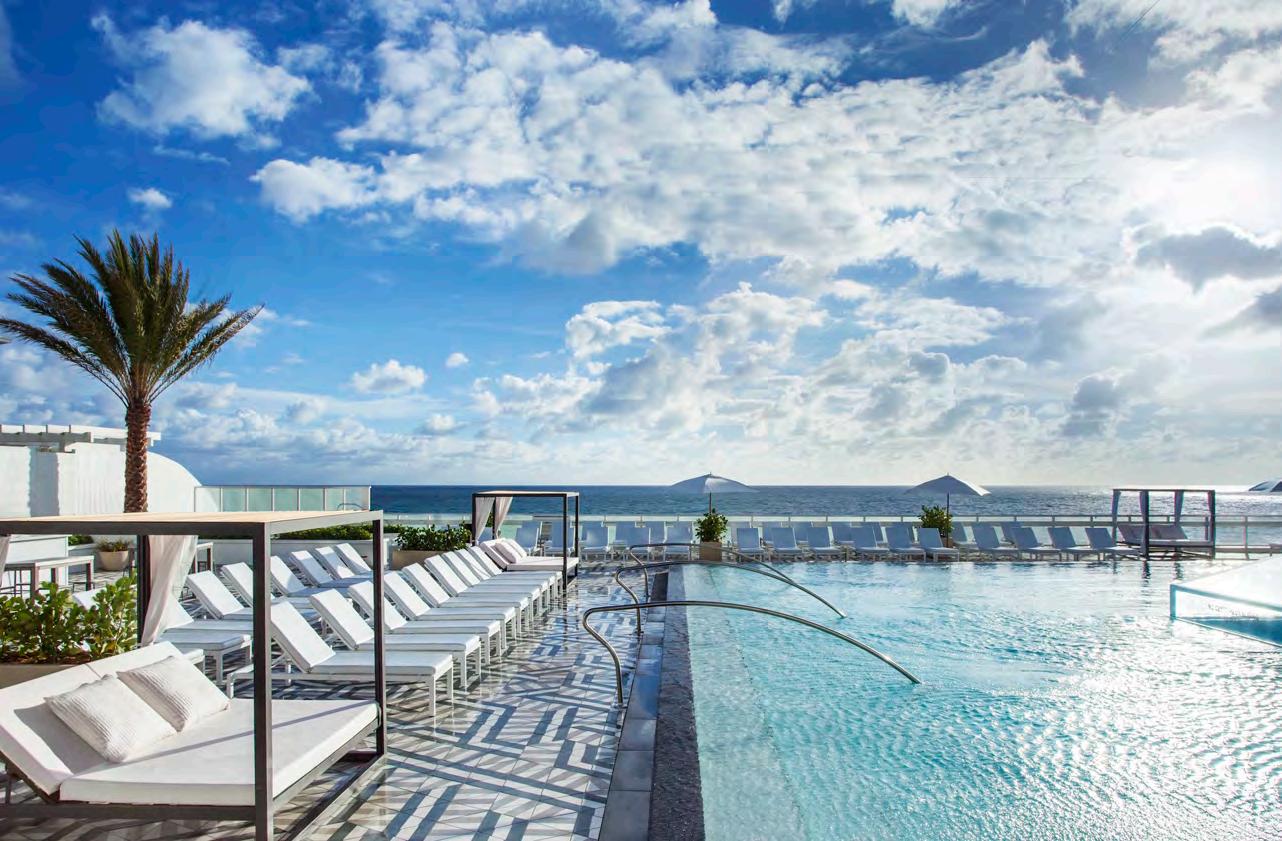 home technologies and more. STANDOUT AMENITIES: The 10th oor is home to a wide range of o erings that prioritize health and wellness, including a state-of-the-art tness center; a pickleball court and a wellness spa with dedicated salt, sauna, steam and massage rooms, as well as hot and cold plunge pools. The tower’s 11th oor includes a private dining room with a catering kitchen; a Sports Lounge with gaming tables and large TVs; an Executive Lounge with private conference rooms ideal for hosting meetings or working from home and a designated residents’ Club Lounge with a Central Bar that o ers enchanting ocean views. When residents step outside, they are met with a true urban oasis complete with an outdoor kitchen, two roo op swimming pools, private cabanas, an expansive sun deck, hot tub and food and beverage services.