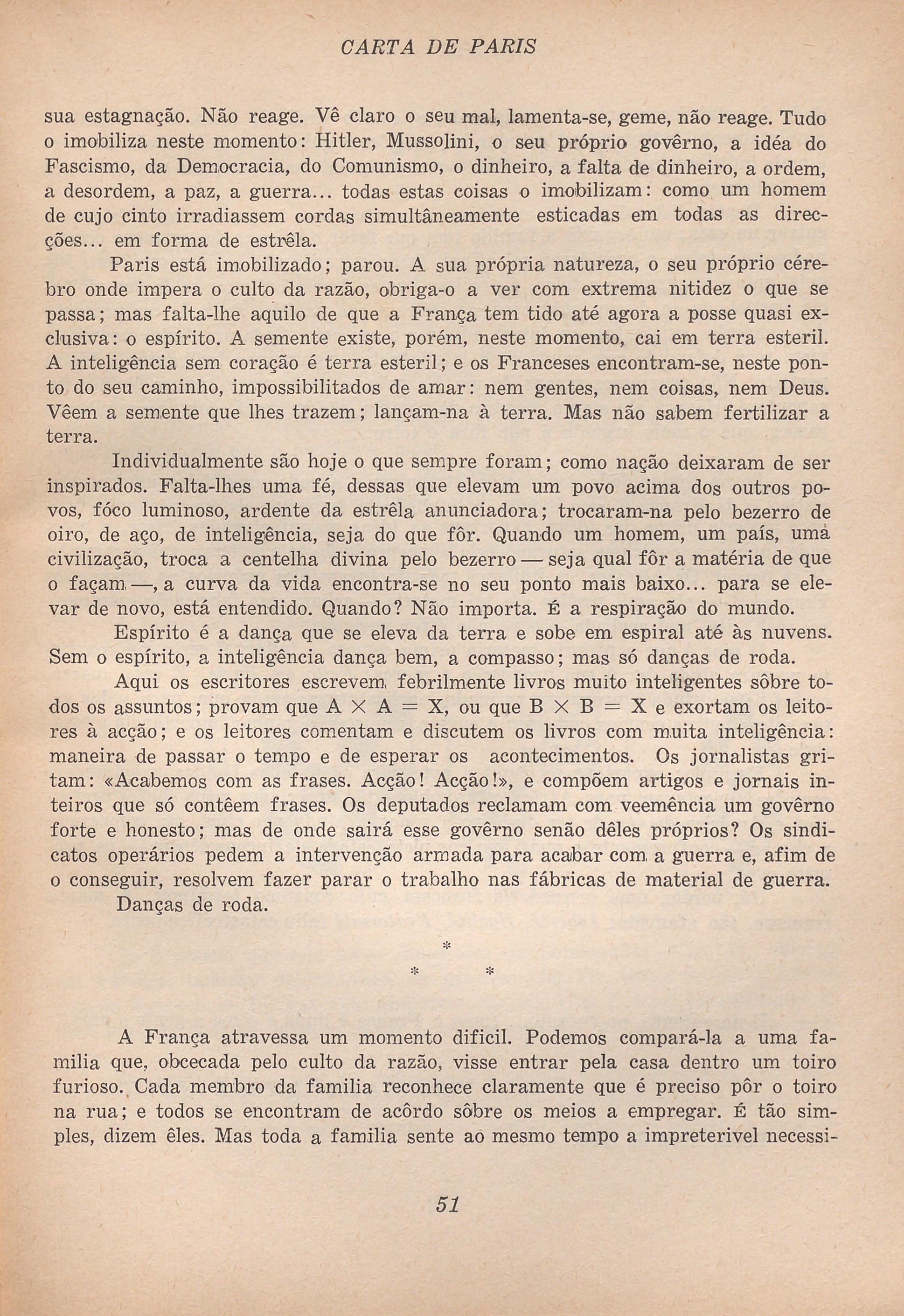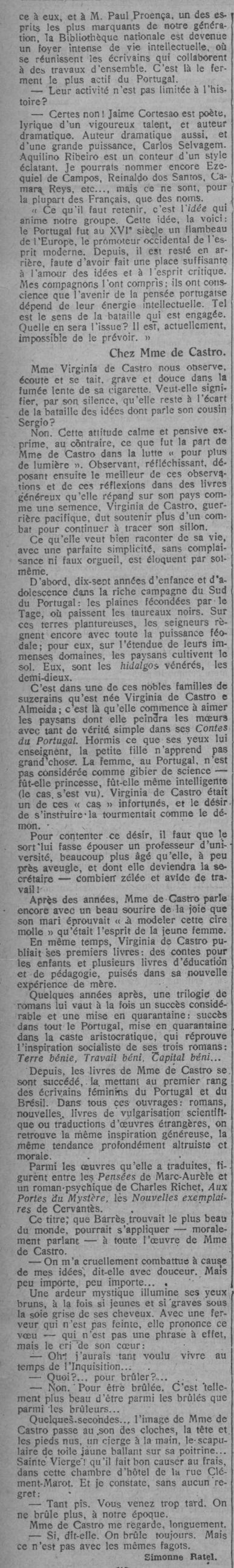 Na minha qualidade de delegada de Portugal junto do Instituto Internacional de Cooperação Intellectual, acabo de assistir a todas as cerimónias e festas da inauguração do Instituto, que tomem aqui em Paris, como convinha a cidade tão civilizada e consciente, as proporções de um importante e solenne acontecimento internacional.