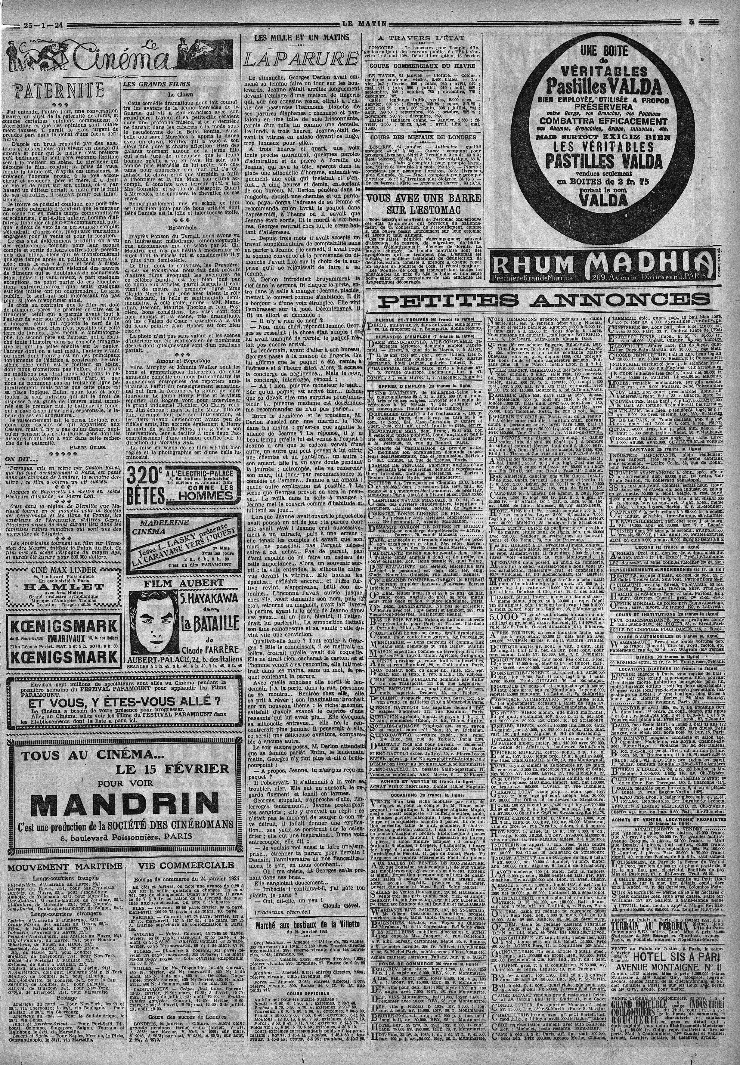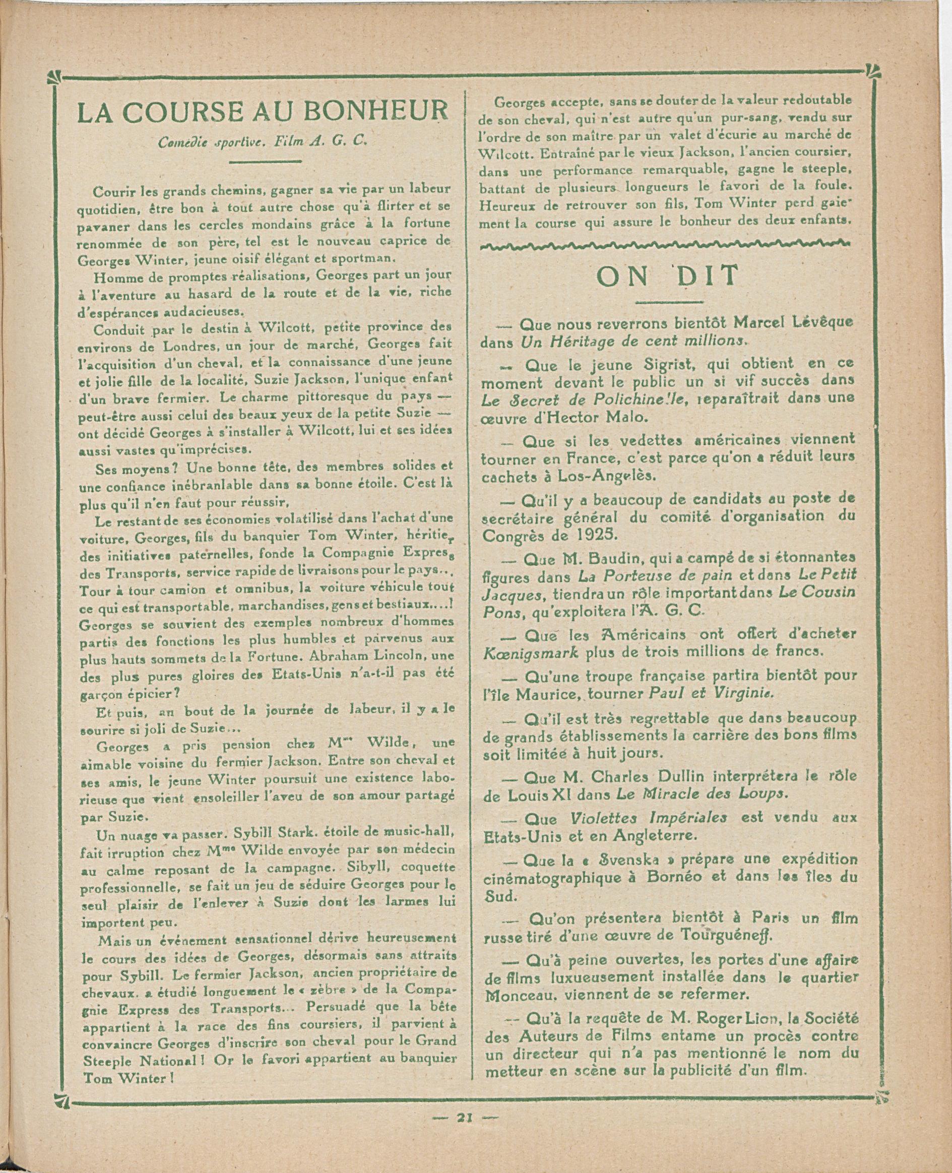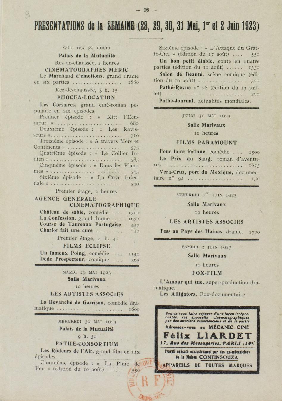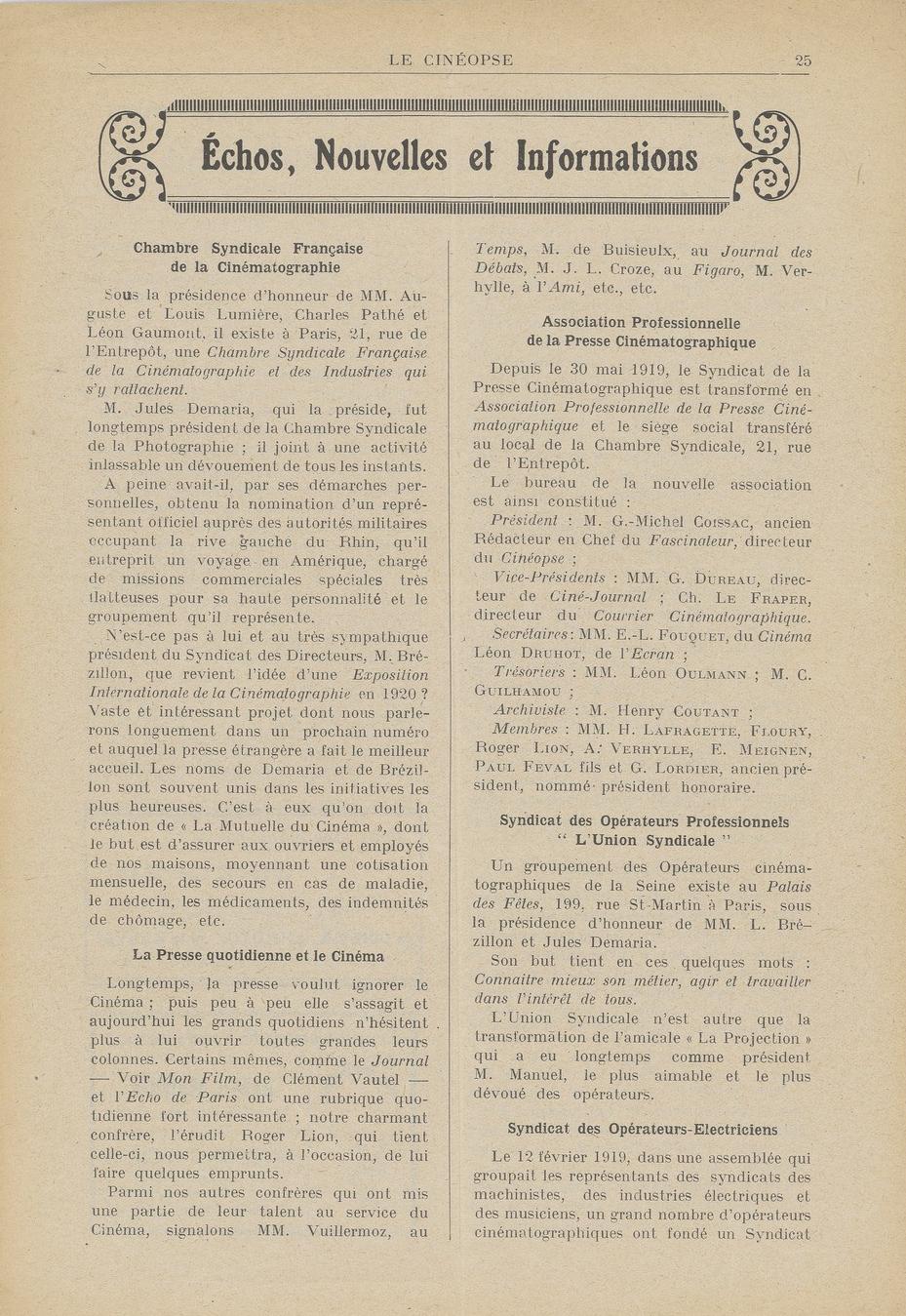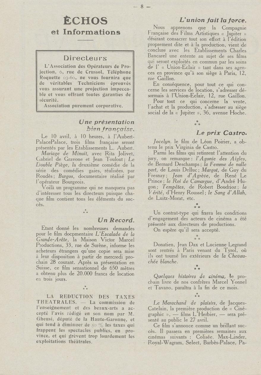 O jornalista, crítico e vendedor de filmes J.-L. Croze assinara desde 16 de março de 1919 no diário Le Figaro uma nova coluna: Courrier des Films , de que se apresentam na página seguinte.