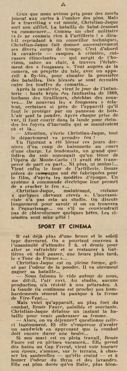 Com a obrigação que tínhamos para com a Comissão Militar, do laboratório de Paris, os rushes eram-lhes remetidos em prioridade, bem examinados por eles, e só vínhamos a recebê-los em Nice, uns dois ou três dias depois, após devida aprovação – com excepção de duas cenas a refazer por ninharias, uma delas comportando mais de cem figurantes a reconvocar –!